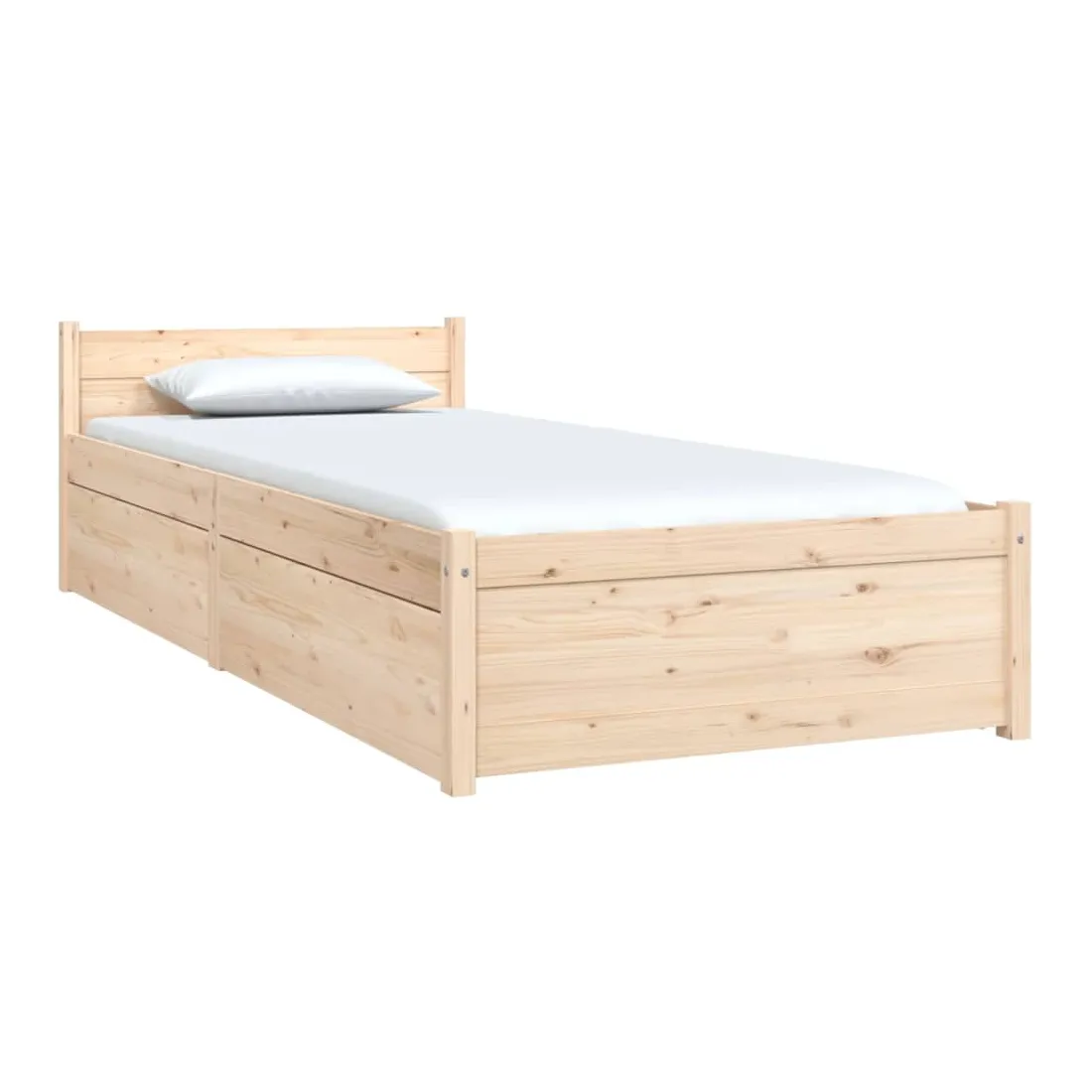 Avec un design simple mais intemporel, ce cadre de lit en bois sera un supplément vraiment pratique et décoratif à votre chambre à coucher. Bois de pin massif : le bois de pin massif est un matériau naturel magnifique. Le bois de pin a un grain droit et les nœuds donnent au matériau son aspect caractéristique et rustique.Lattes robustes : les lattes de contreplaqué assurent une bonne répartition du poids, garantissant que le matelas reste en place à chaque torsion de votre corps pendant le sommeil.Fonction de rangement : les tiroirs de lit inclus offrent suffisamment d'espace de rangement pour ranger vos articles essentiels, gardant votre pièce propre et bien rangée. Remarque :La livraison comprend uniquement le cadre de lit. Les matelas ne sont pas inclus. Vous pouvez consulter notre boutique pour trouver les matelas assortis.Ce cadre de lit convient à un matelas mesurant 75 x 190 cm (petit simple).