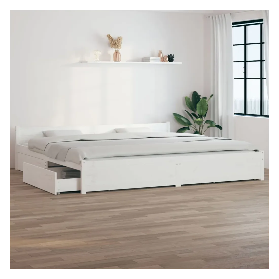 Cadre de lit sans matelas avec tiroirs blanc 200x200 cm