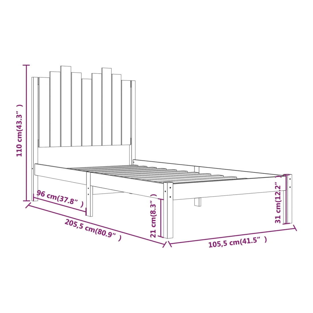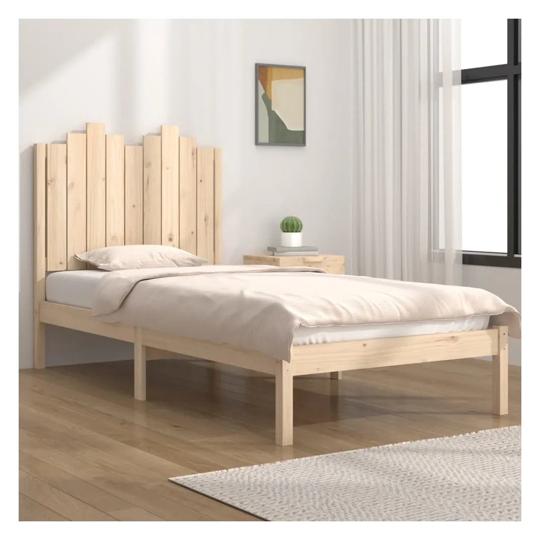 vidaXLQuoi de mieux que de profiter d'une bonne nuit de sommeil à la fin d'une journée bien remplie ? Ce cadre de lit en bois classique est le choix parfait pour votre lit et la première chose que vous voulez vous détendre après une longue journée. Bois de pin massif : le bois de pin massif est un matériau naturel magnifique. Le bois de pin a un grain droit et les nœuds donnent au matériau son aspect caractéristique et rustique.Lattes pour un soutien supplémentaire : les lattes offrent un soutien supplémentaire à votre lit. Elles prolongent la durée de vie de votre matelas en absorbant la majeure partie du stress et du poids sur le lit.Tête de lit pratique : la tête de lit offre un soutien supplémentaire, augmentant le niveau de confort. En outre, elle peut maintenir vos oreillers en place pour un meilleur sommeil. Bon à savoir : La livraison comprend uniquement un cadre de lit. Le matelas n'est pas inclus. Vous pouvez consulter notre boutique pour trouver les matelas assortis.Certaines pièces de tête de lit sont emballées dans les cartons du cadre de lit en raison du manque d’espace.Ce cadre de lit convient à un matelas mesurant 100 x 200 cm.