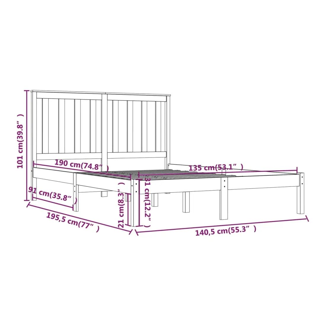 - Dimensions du cadre de lit : 195,5 x 140,5 x 31 cm (L x l x H)