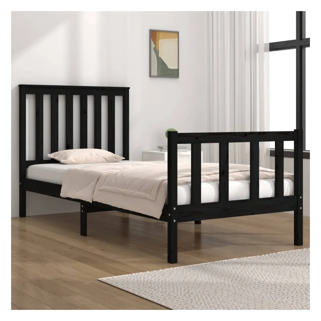 Quoi de mieux que de profiter d'une bonne nuit de sommeil à la fin d'une journée bien remplie ? Ce cadre de lit en bois classique est le choix parfait pour vous détendre après une longue journée. Bois de pin massif : le bois de pin massif est un matériau naturel magnifique. Le bois de pin a un grain droit et les nœuds donnent au matériau son aspect caractéristique et rustique.Cadre robuste et stable : le cadre en bois assure robustesse et stabilité.Soutien confortable : la tête de lit vous offre un excellent soutien dorsal lorsque vous êtes assis dans votre lit pour lire ou regarder des films. Bon à savoir :La livraison comprend uniquement un cadre de lit. Le matelas n'est pas inclus. Vous pouvez consulter notre boutique pour trouver les matelas assortis.Certaines pièces de tête de lit sont emballées dans les cartons du cadre de lit en raison du manque d’espace.Ce cadre de lit convient à un matelas mesurant 75 x 190 cm (petit simple).