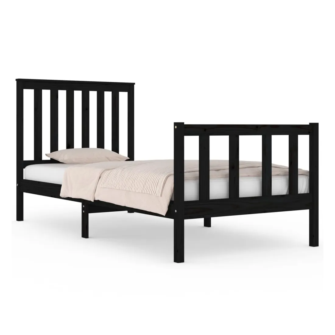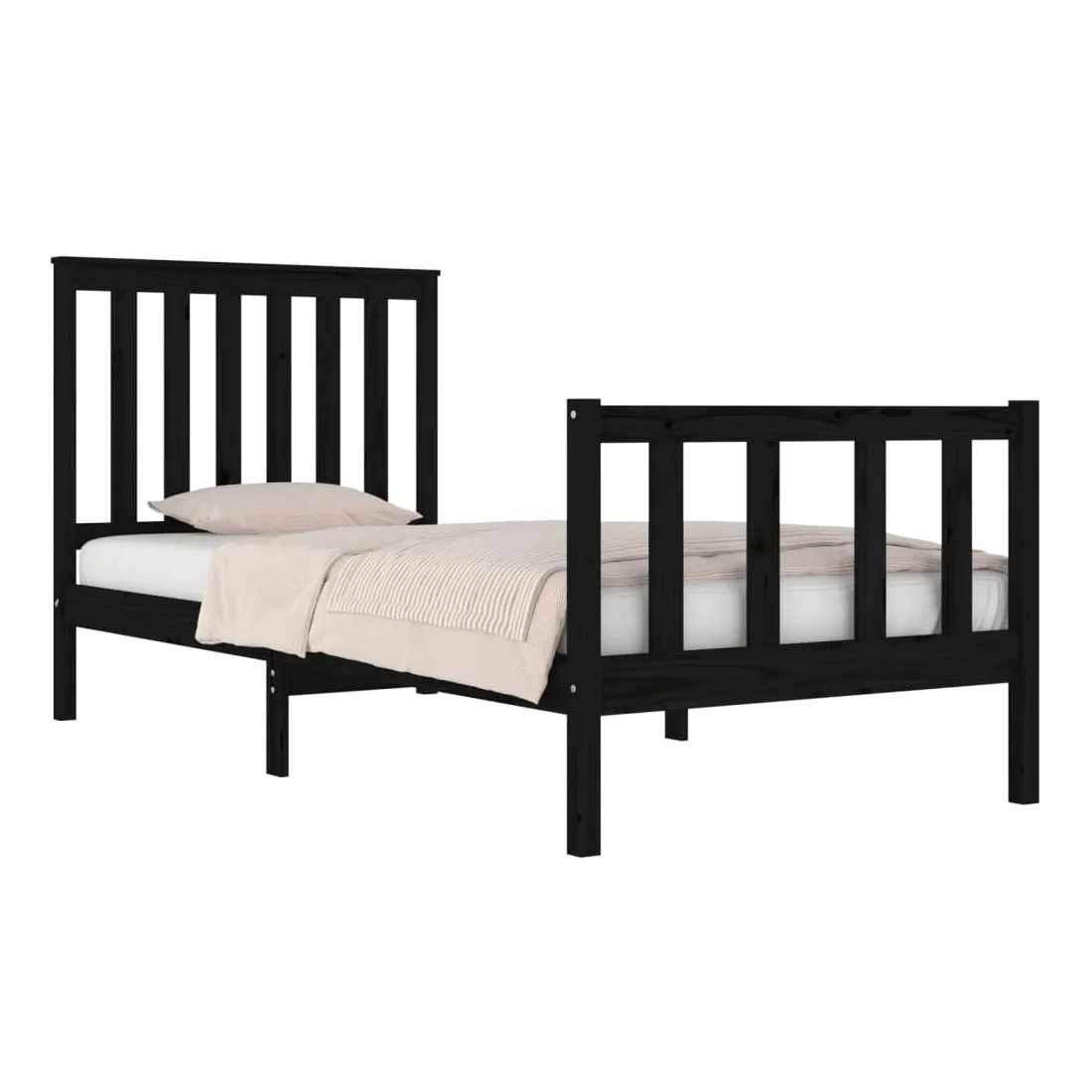 Cadre de lit sans matelas noir bois massif