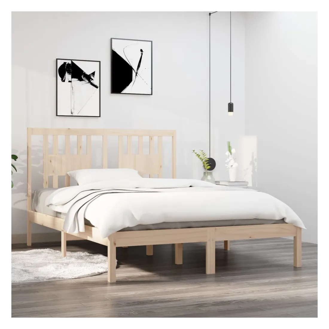 Quoi de mieux que de profiter d'une bonne nuit de sommeil à la fin d'une journée bien remplie ? Ce cadre de lit en bois classique est le choix parfait pour votre lit et la première chose que vous voulez vous détendre après une longue journée. Bois de pin massif : le bois de pin massif est un matériau naturel magnifique. Le bois de pin a un grain droit et les nœuds donnent au matériau son aspect caractéristique et rustique.Lattes pour un soutien supplémentaire : les lattes offrent un soutien supplémentaire à votre lit. Elles prolongent la durée de vie de votre matelas en absorbant la majeure partie du stress et du poids sur le lit.Tête de lit pratique : la tête de lit offre un soutien supplémentaire, augmentant le niveau de confort. En outre, elle peut maintenir vos oreillers en place pour un meilleur sommeil. Bon à savoir :La livraison comprend uniquement un cadre de lit. Le matelas n'est pas inclus. Vous pouvez consulter notre boutique pour trouver les matelas assortis.Certaines pièces de tête de lit sont emballées dans les cartons du cadre de lit en raison du manque d’espace.Ce cadre de lit convient à un matelas mesurant 135 x 190 cm (double).