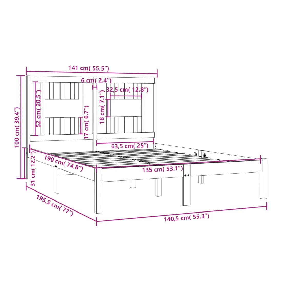 • Dimensions totales du cadre de lit : 195,5 x 141 x 100 cm (L x l x H)