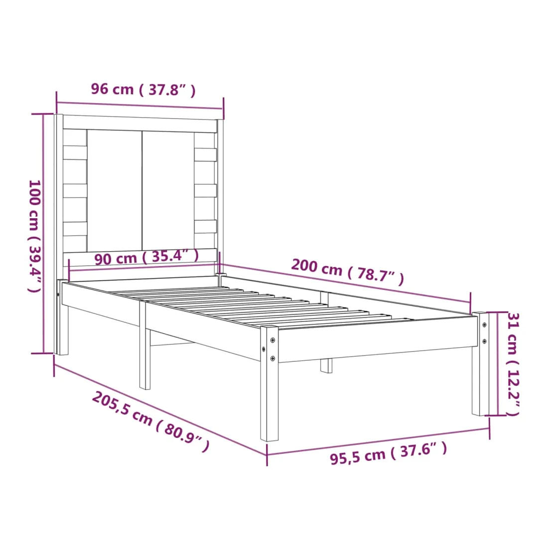 • Dimensions de la tête de lit : 96 x 4 x 100 cm (L x l x H)