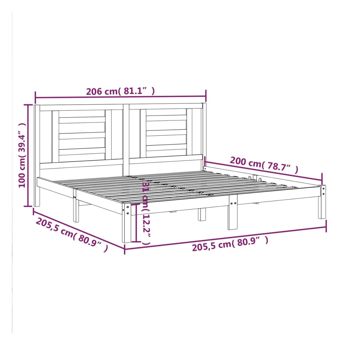 - Dimensions du cadre du lit : 205,5 x 205,5 x 31 cm (L x l x H)