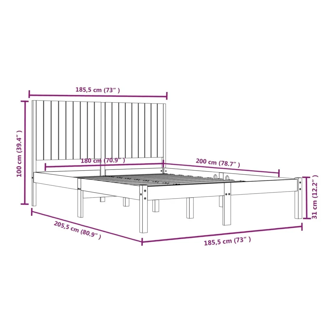 - Dimensions du cadre du lit : 205,5 x 185,5 x 31 cm (L x l x H)
