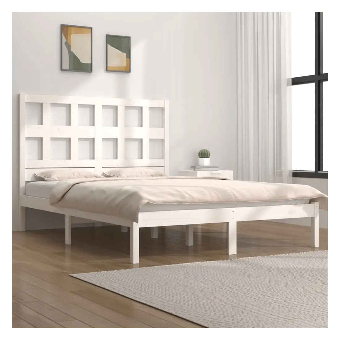 Cadre de lit sans matelas blanc 160x200 cm bois de pin massif