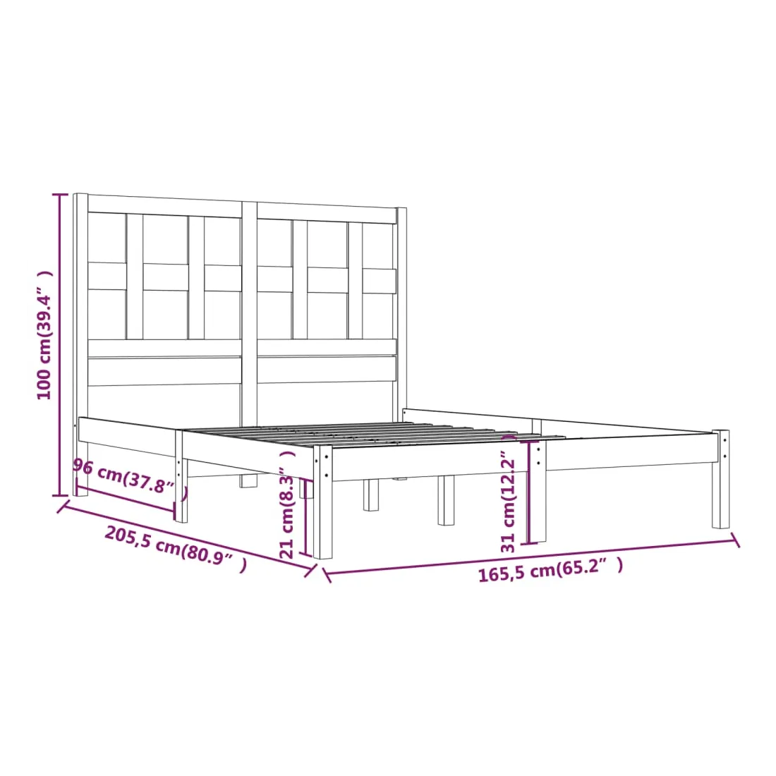 • Dimensions du cadre du lit : 205,5 x 165,5 x 31 cm (L x l x H)