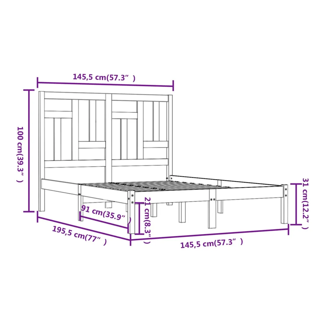 - Dimensions du cadre de lit : 195,5 x 145,5 x 31 cm (L x l x H)