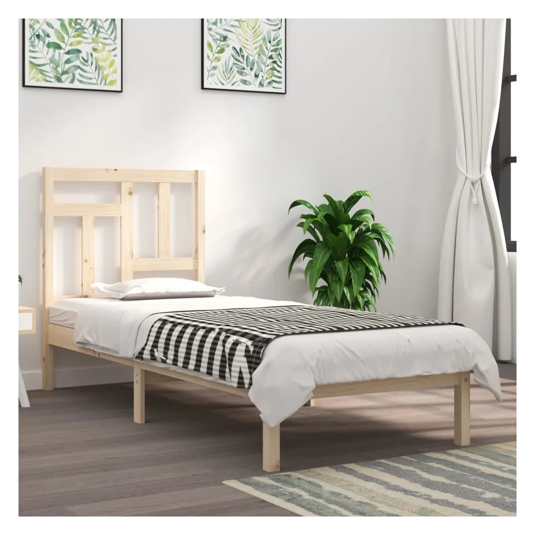 Prenez le chemin moderne vers votre chambre à coucher cool avec ce cadre de lit en bois ! Il constitue un supplément pratique et décoratif à votre intérieur. Bois de pin massif : le bois de pin massif est un matériau naturel magnifique. Le bois de pin a un grain droit et les nœuds donnent au matériau son aspect caractéristique et rustique.Cadre robuste et stable : le cadre en bois assure robustesse et stabilité.Tête de lit confortable : la tête de lit classique vous permet de vous reposer confortablement lorsque vous lisez ou regardez un film.Design accrocheur : la conception de la tête de lit est décorative et pratique. Il ajoute un style et un confort uniques. Bon à savoir :La livraison comprend uniquement un cadre de lit. Le matelas n'est pas inclus. Vous pouvez consulter notre boutique pour trouver les matelas assortis.Certaines pièces de tête de lit sont emballées dans les cartons du cadre de lit en raison du manque d’espace.Ce cadre de lit convient à un matelas mesurant 90 x 200 cm.