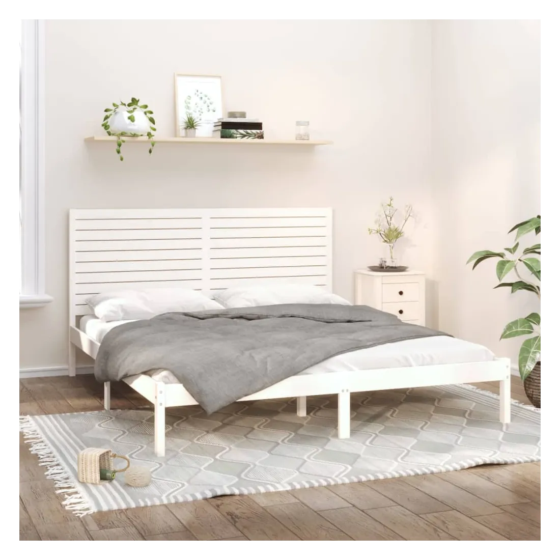 Avec un design simple mais intemporel, ce cadre de lit en bois sera un supplément vraiment pratique et décoratif à votre chambre à coucher. Bois de pin massif : le bois de pin massif est un matériau naturel magnifique. Le bois de pin a un grain droit et les nœuds donnent au matériau son aspect caractéristique et rustique.Cadre robuste et stable : les cadres de lit en bois en bois assurent robustesse et stabilité.Soutien confortable : la tête de lit vous offre un excellent soutien dorsal lorsque vous êtes assis au lit pour lire ou regarder des films.Design intemporel : la couleur et le design du sommier peuvent s'assortir facilement avec votre intérieur. Bon à savoir :Le matelas n'est pas inclus. Vous pouvez consulter notre boutique pour trouver les matelas assortis.Certaines pièces de tête de lit sont emballées dans les cartons du cadre de lit en raison du manque d’espace.Ce cadre de lit convient à un matelas mesurant 200 x 200 cm.
