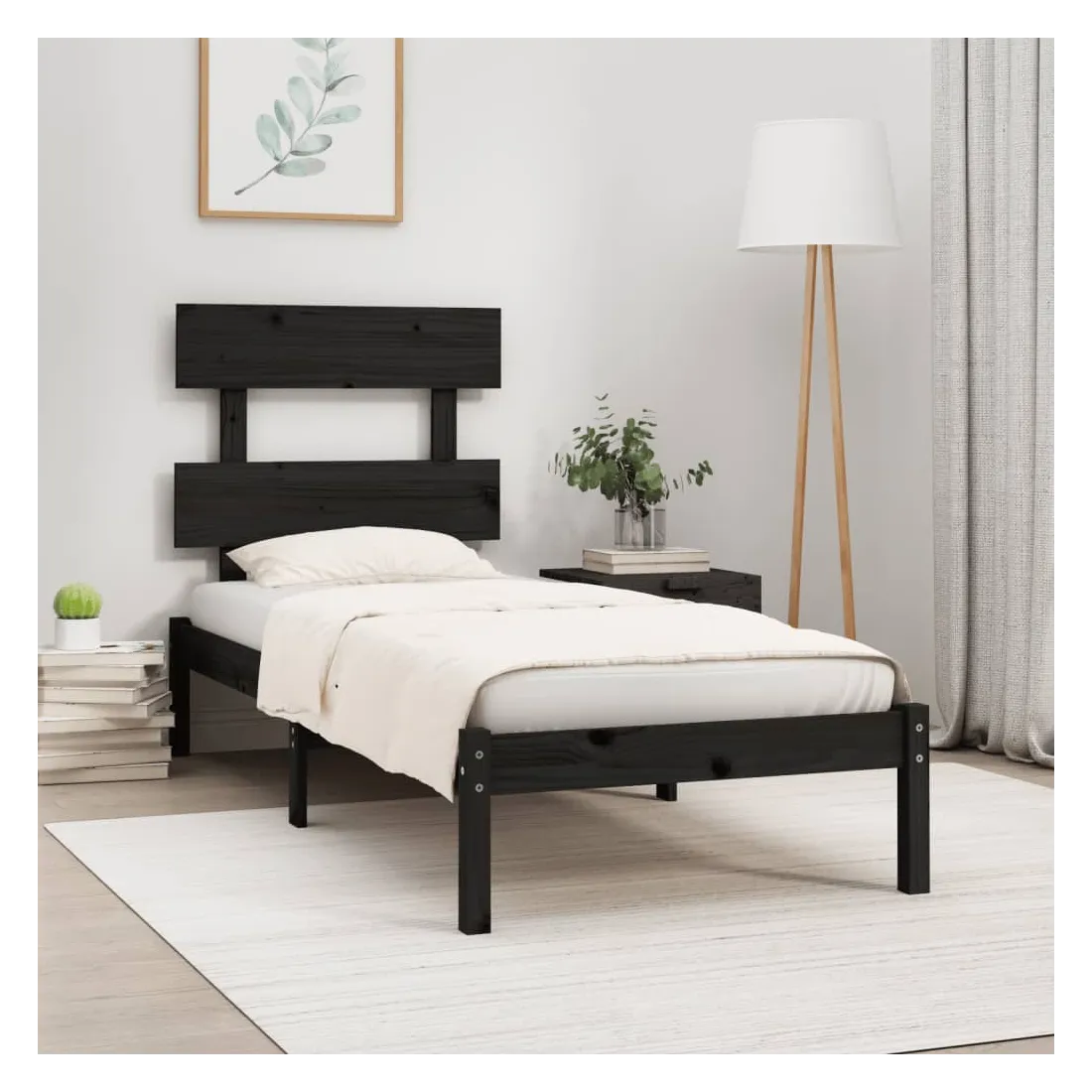 Cadre de lit sans matelas noir 100x200 cm bois massif