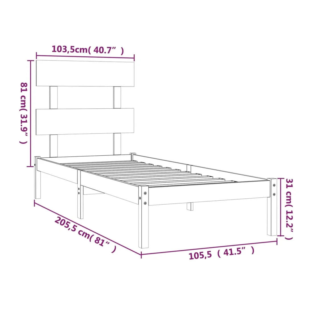 • Dimensions du cadre de lit : 205,5 x 105,5 x 31 cm (L x l x H)