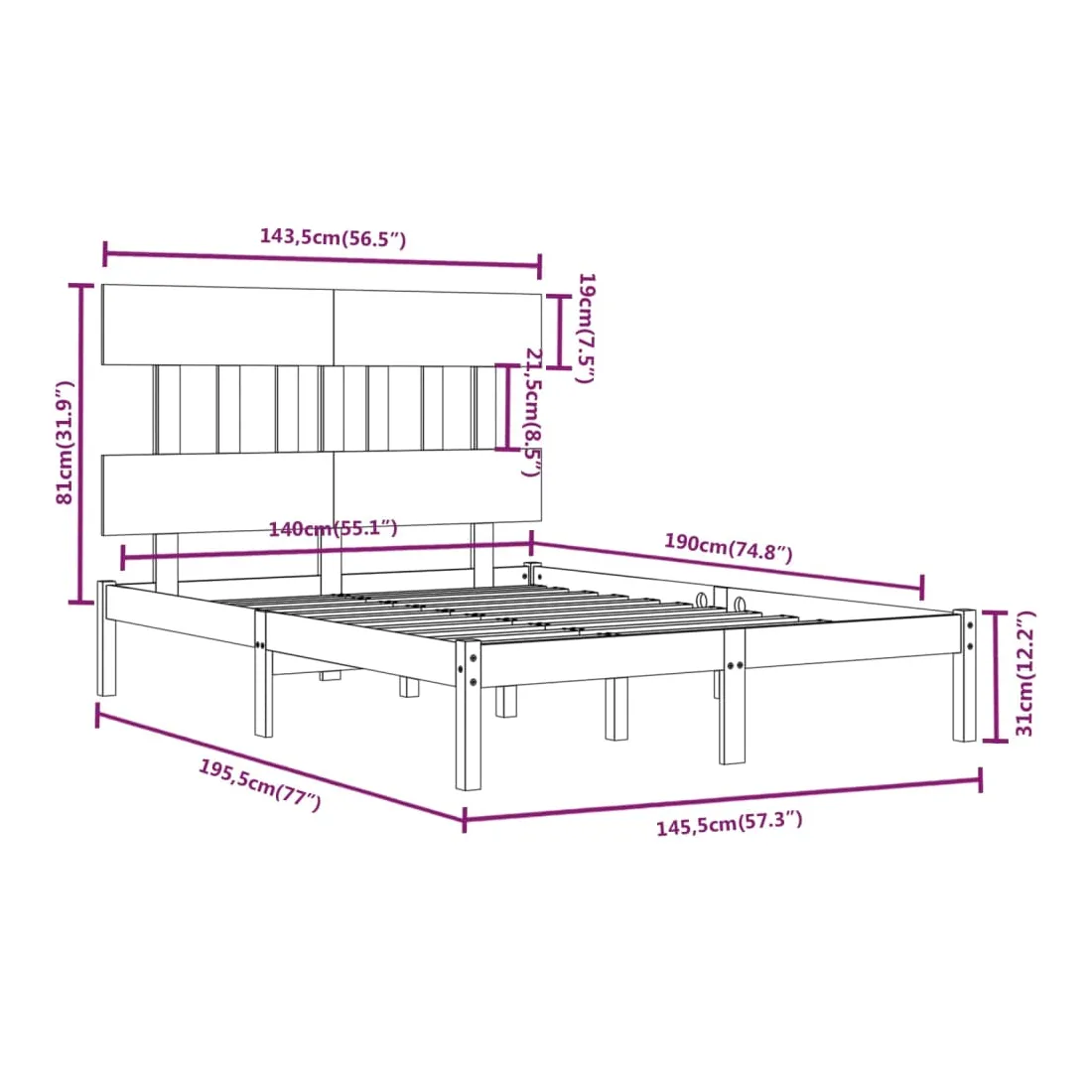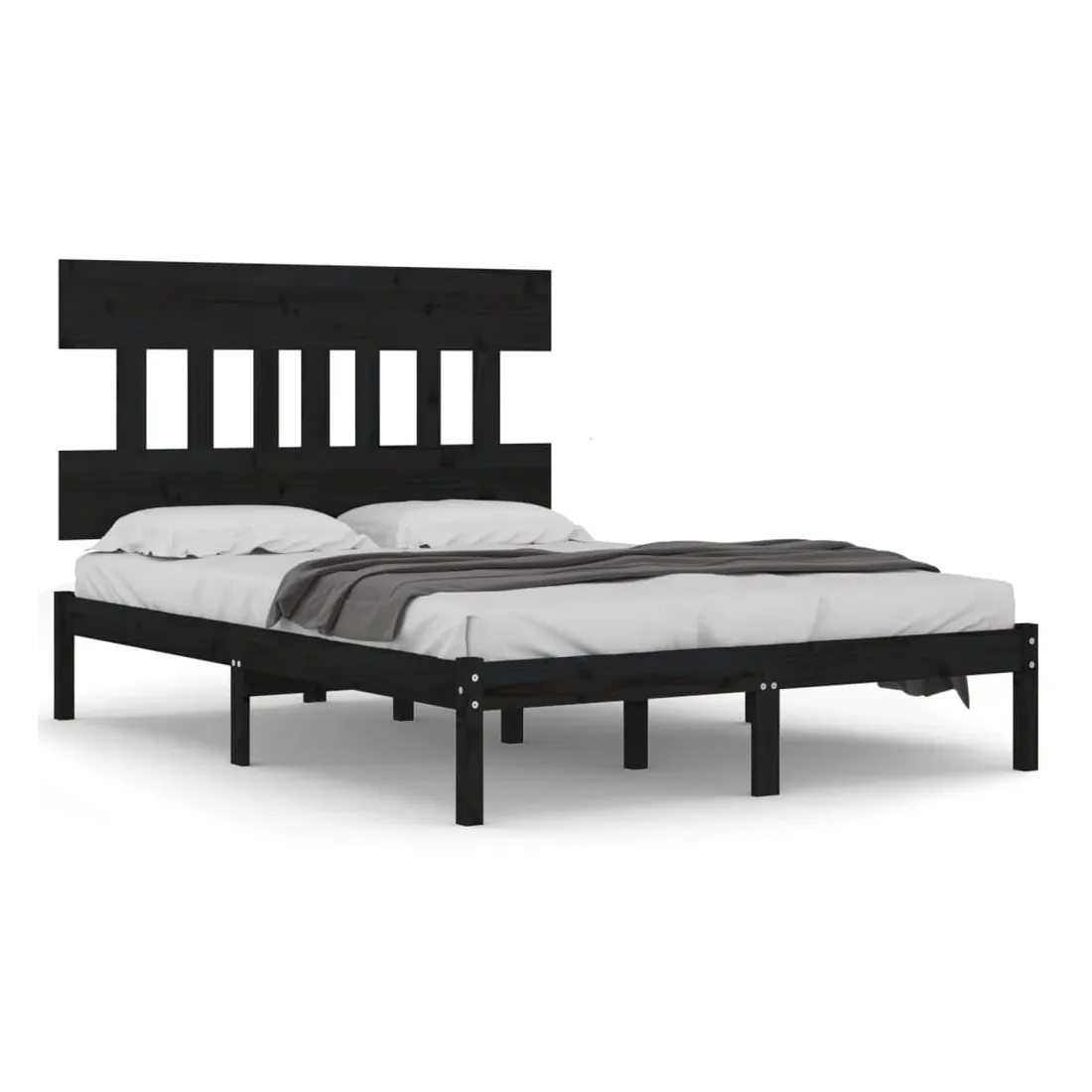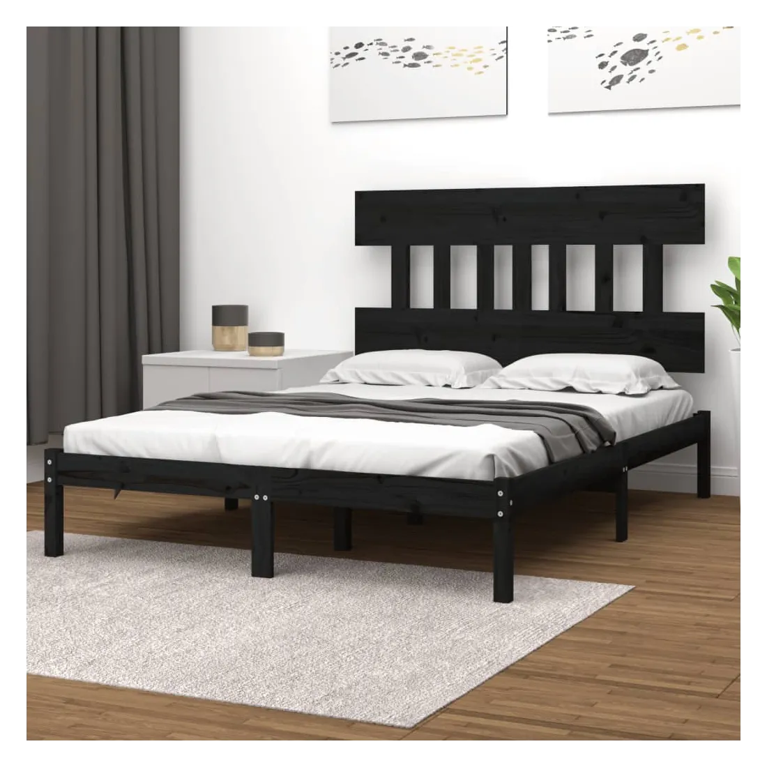 Cadre de lit sans matelas noir 140x190 cm bois massif