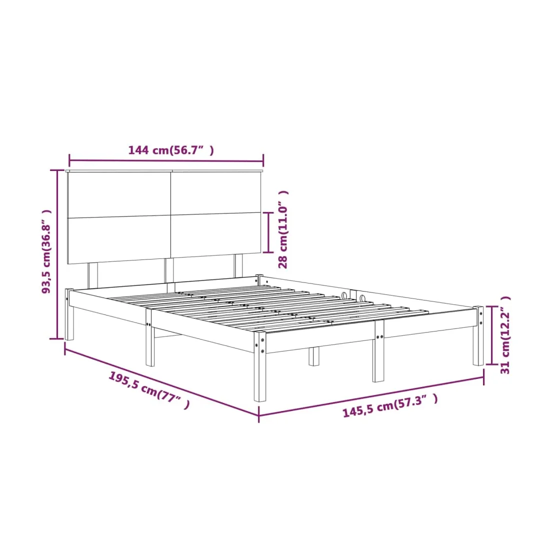 • Dimensions de la tête de lit : 144 x 6 x 82,5 cm (l x P x H)