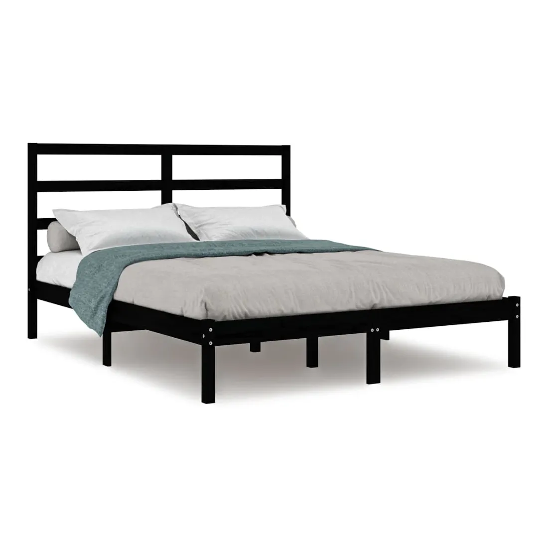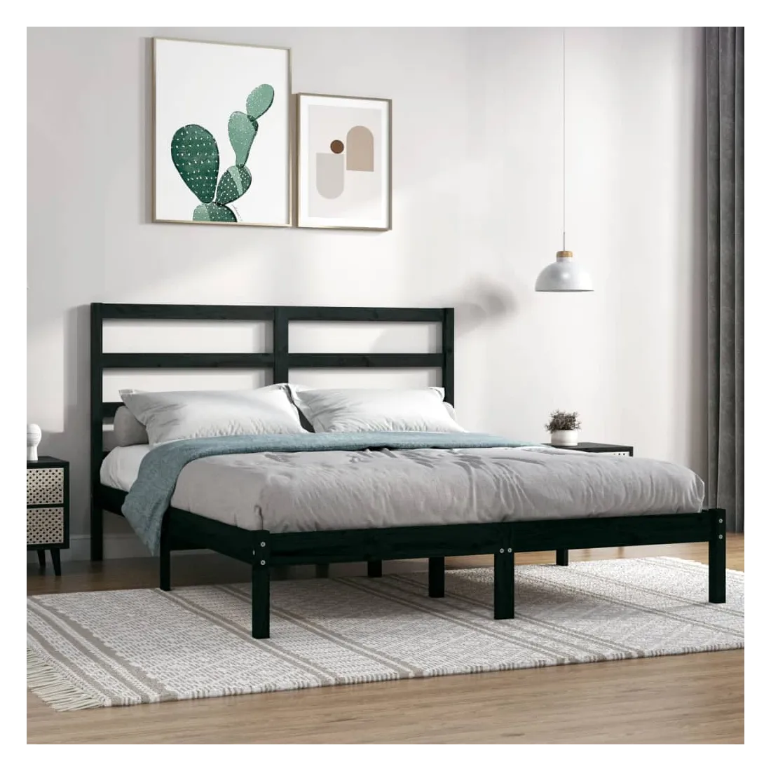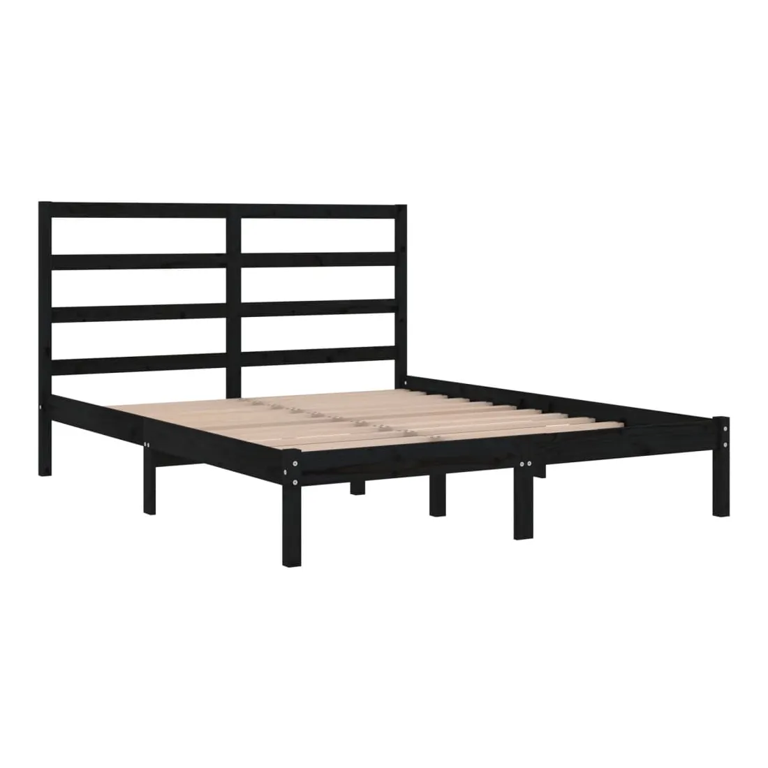 Cadre de lit sans matelas noir 140x190 cm bois de pin massif