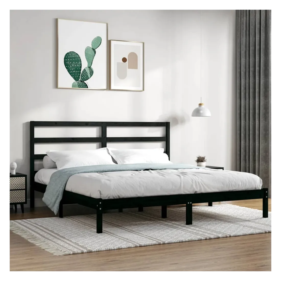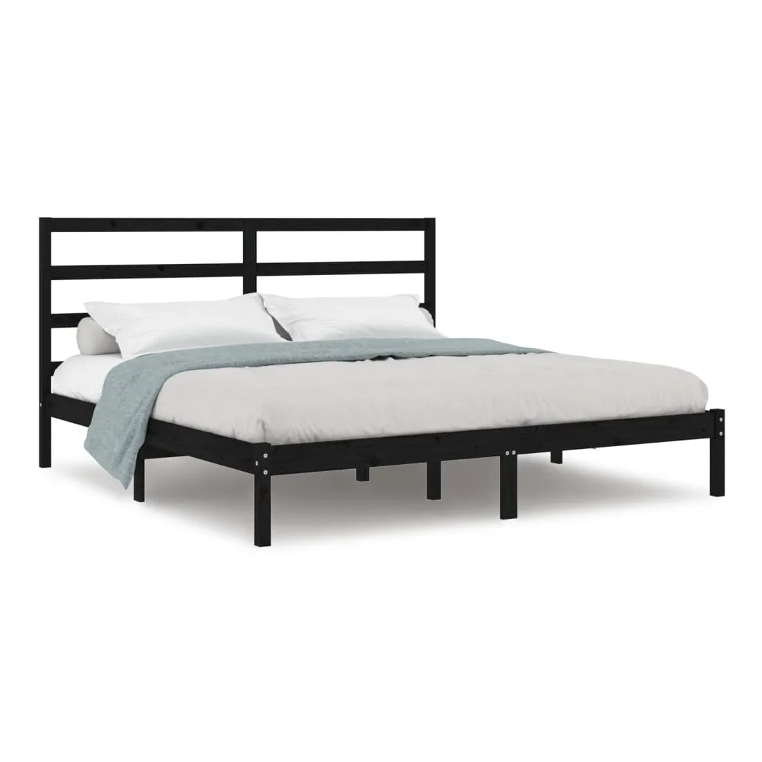 Cadre de lit sans matelas noir 200x200 cm bois massif de pin
