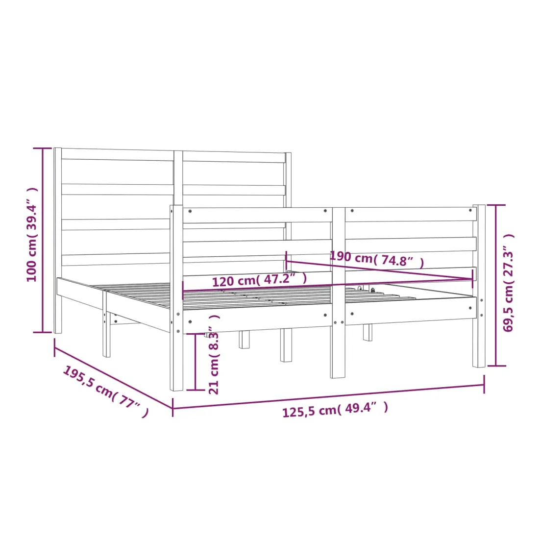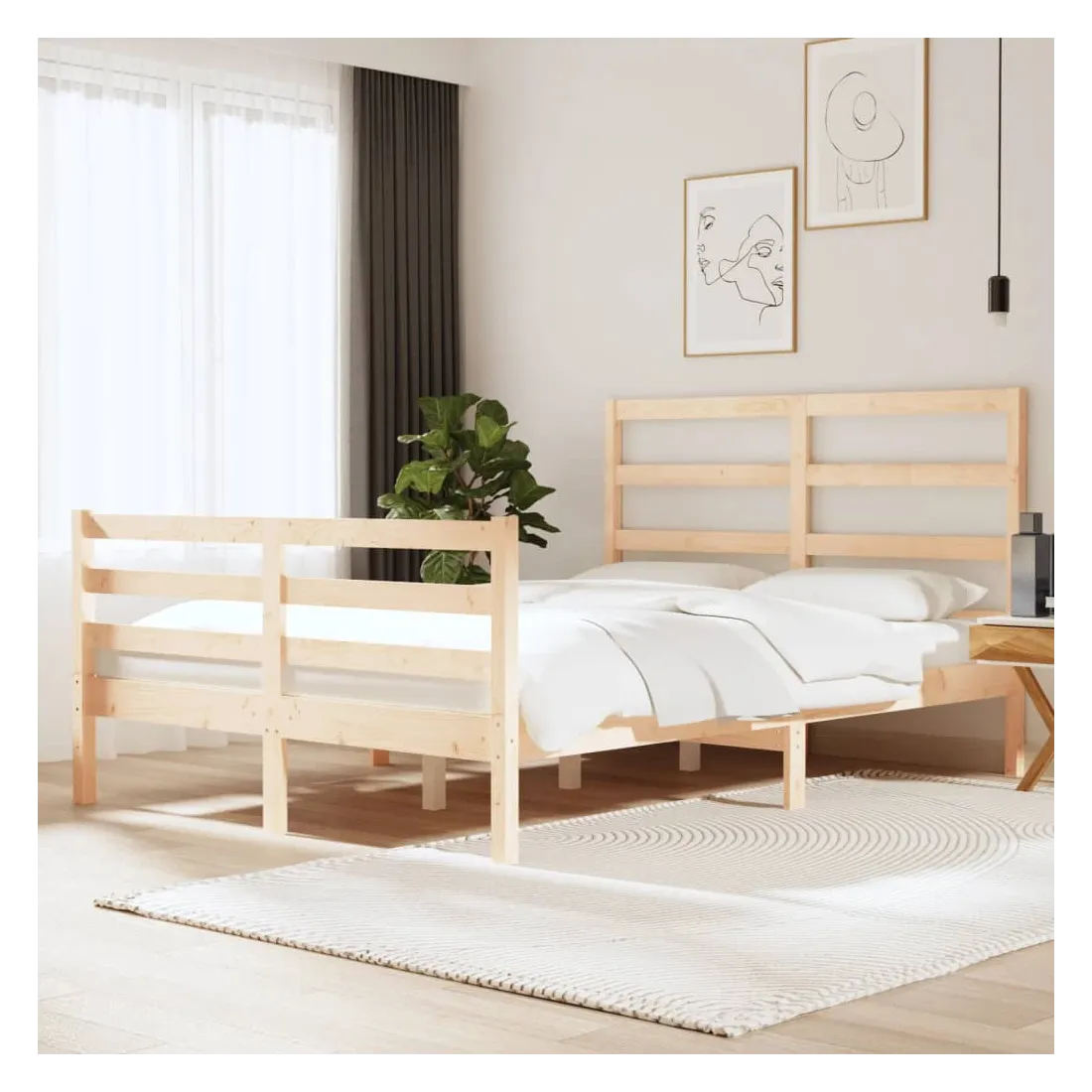 Avec un design simple mais intemporel, ce cadre de lit en bois sera un supplément vraiment pratique et décoratif à votre chambre à coucher. Bois de pin massif : le bois de pin massif est un matériau naturel magnifique. Le bois de pin a un grain droit et les nœuds donnent au matériau son aspect caractéristique et rustique. Cadre de lit robuste : le cadre en bois assure robustesse et stabilité. Les lattes apportent un soutien supplémentaire à votre lit. Il prolonge la durée de vie de votre matelas en absorbant la majeure partie du stress et du poids sur le lit. Soutien confortable : la tête de lit vous offre un excellent soutien dorsal lorsque vous êtes assis au lit pour lire ou regarder des films. Remarque : Le matelas n'est pas inclus. Vous pouvez consulter notre boutique pour trouver