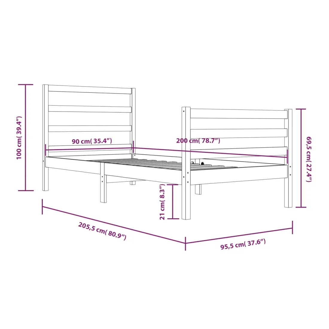 Avec un design simple mais intemporel, ce cadre de lit sera un supplément vraiment pratique et décoratif à votre chambre à coucher. Bois de pin massif : le bois de pin massif est un matériau naturel magnifique. Le bois de pin a un grain droit et les nœuds donnent au matériau son aspect caractéristique et rustique.Cadre de lit robuste : le cadre en bois assure robustesse et stabilité. Les lattes apportent un soutien supplémentaire à votre lit. Il prolonge la durée de vie de votre matelas en absorbant la majeure partie du stress et du poids sur le lit.Soutien confortable : la tête de lit vous offre un excellent soutien dorsal lorsque vous êtes assis au lit pour lire ou regarder des films. Remarque :Le matelas n'est pas inclus. Vous pouvez consulter notre boutique pour trouver les matelas assortis.Ce cadre de lit convient à un matelas mesurant 90 x 200 cm.
