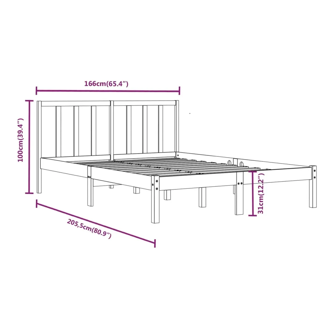 Avec un design simple mais intemporel, ce cadre de lit en bois sera un supplément vraiment pratique et décoratif à votre chambre à coucher. Matériau de première qualité : le bois de pin massif est un matériau naturel magnifique. Le bois de pin a un grain droit et les nœuds donnent au matériau son aspect caractéristique et rustique.Cadre de lit robuste : le cadre en bois assure robustesse et stabilité. Les lattes apportent un soutien supplémentaire à votre lit. Il prolonge la durée de vie de votre matelas en absorbant la majeure partie du stress et du poids sur le lit.Soutien confortable : la tête de lit vous offre un excellent soutien dorsal lorsque vous êtes assis au lit pour lire ou regarder des films. Remarque :Le matelas n'est pas inclus. Vous pouvez consulter notre boutique pour trouver les matelas assortis.Ce cadre de lit en bois convient à un matelas mesurant 160 x 200 cm.