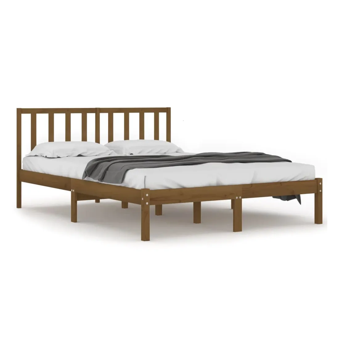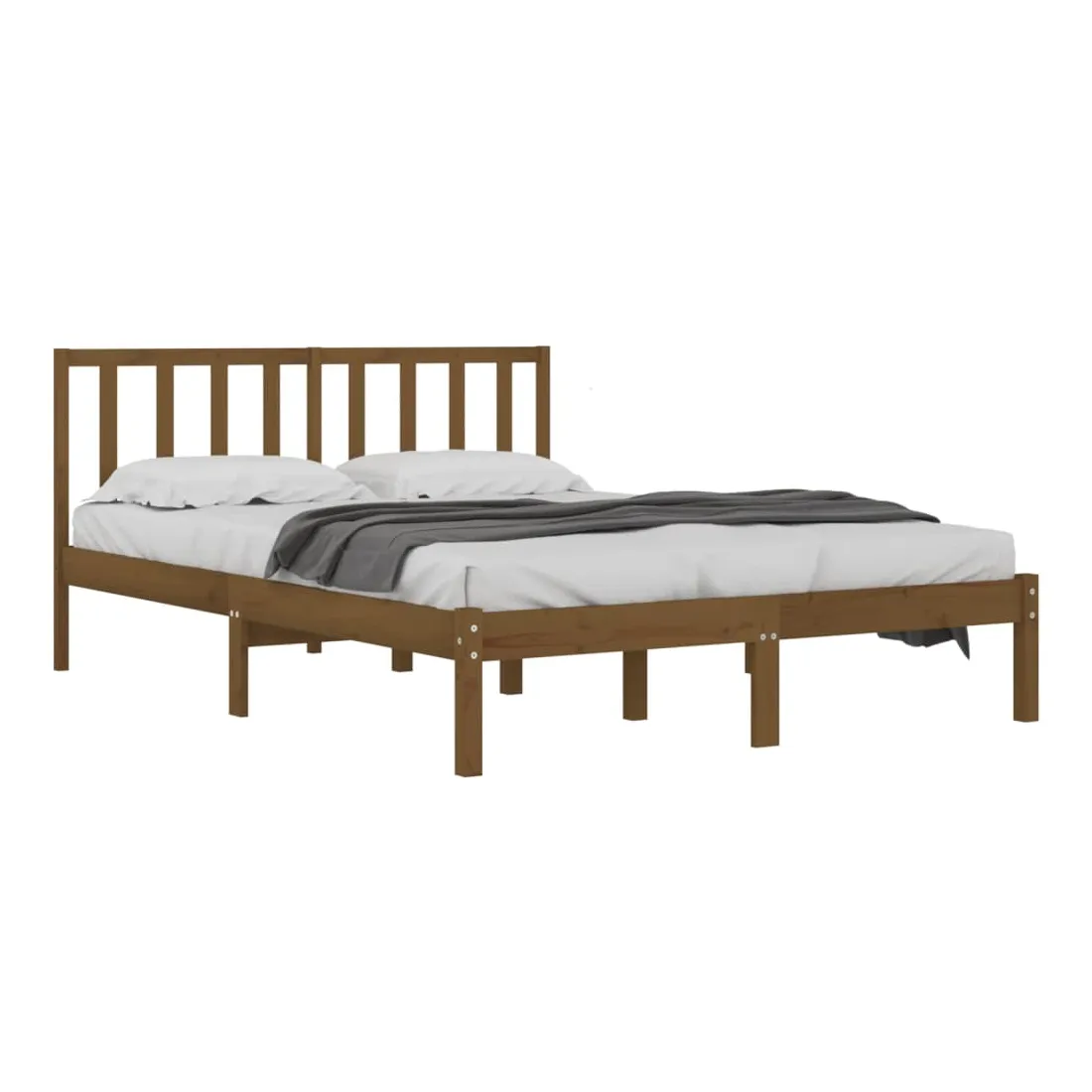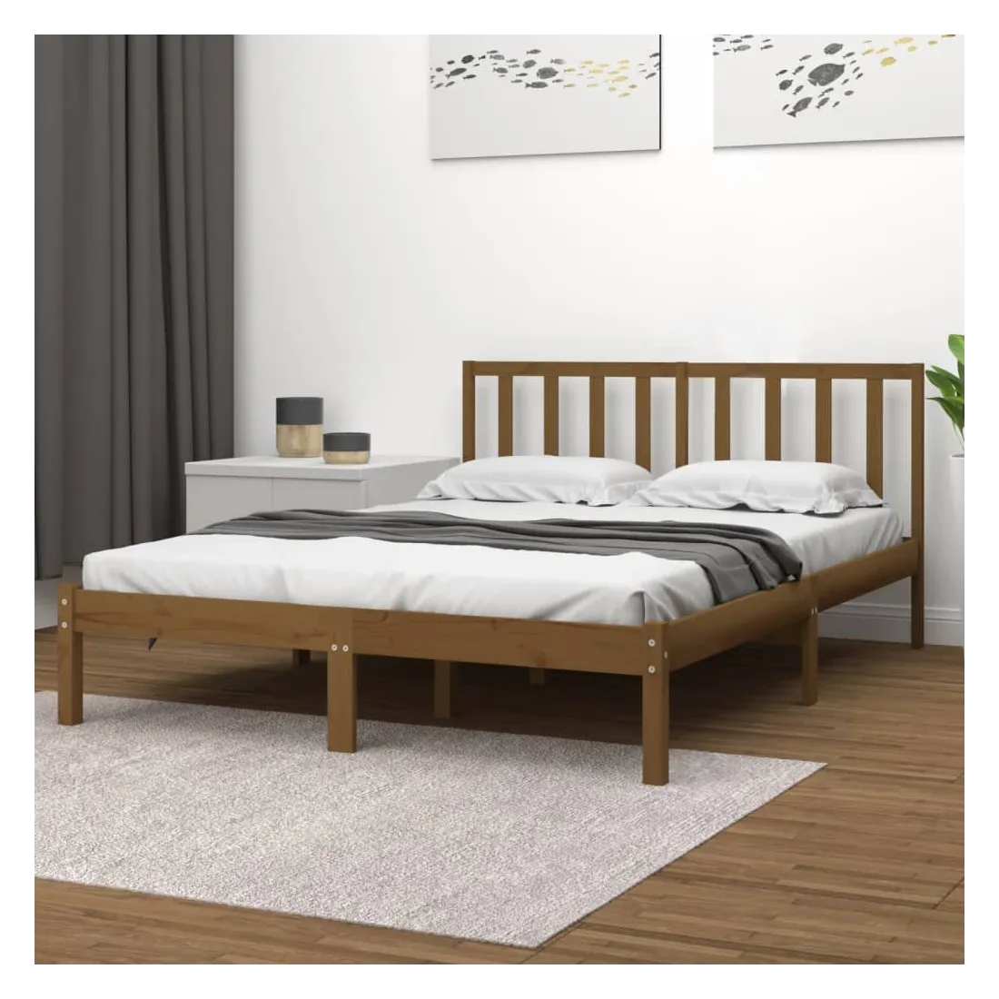 Cadre de lit sans matelas marron miel bois pin massif 200x200cm