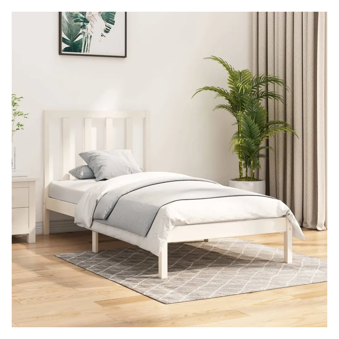 Cadre de lit sans matelas blanc bois de pin massif 75x190 cm