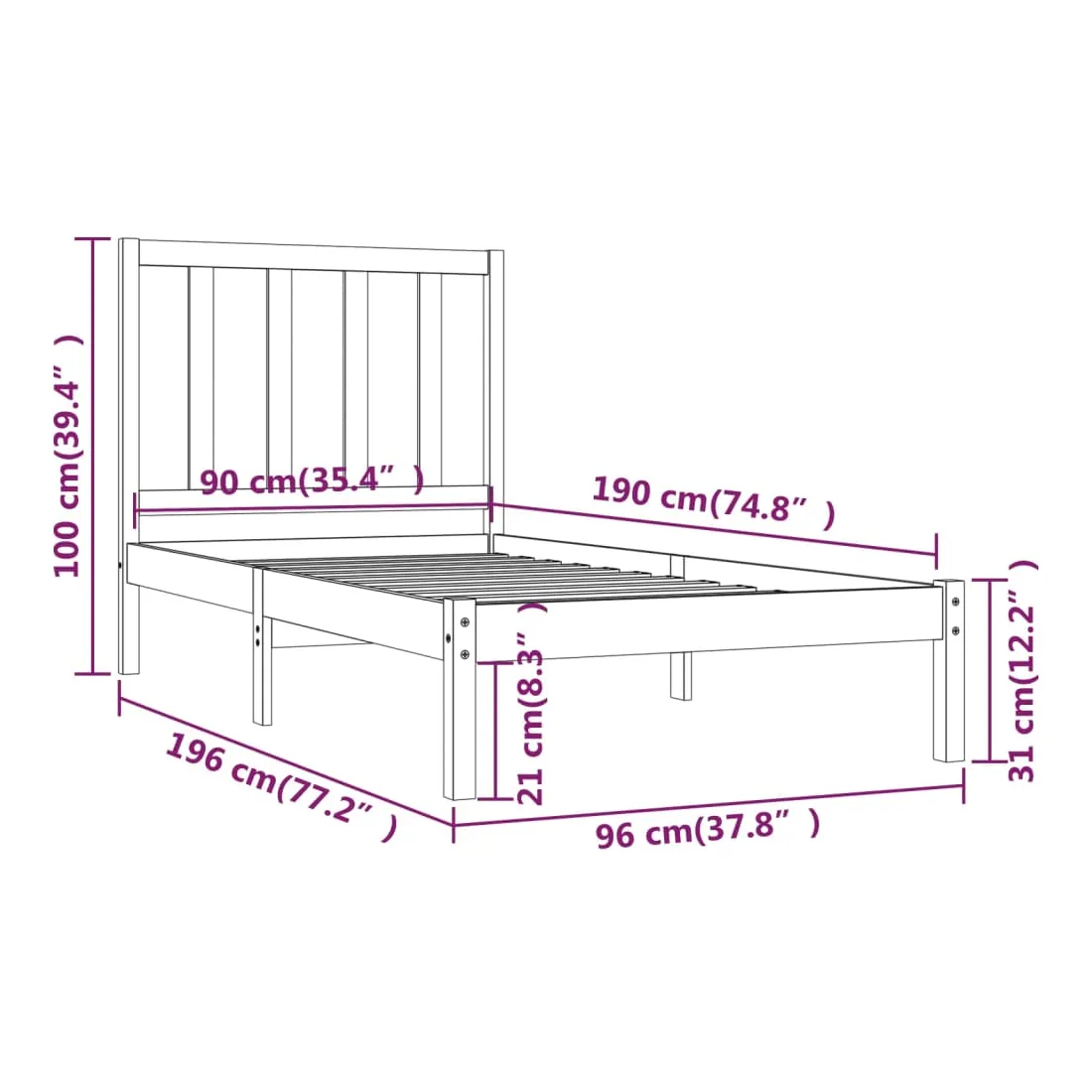 Avec un design simple mais intemporel, ce cadre de lit en bois sera un supplément vraiment pratique et décoratif à votre chambre à coucher. Matériau de première qualité : le bois de pin massif est un matériau naturel magnifique. Le bois de pin a un grain droit et les nœuds donnent au matériau son aspect caractéristique et rustique.Cadre de lit robuste : le cadre en bois assure robustesse et stabilité. Les lattes apportent un soutien supplémentaire à votre lit. Il prolonge la durée de vie de votre matelas en absorbant la majeure partie du stress et du poids sur le lit.Soutien confortable : la tête de lit vous offre un excellent soutien dorsal lorsque vous êtes assis au lit pour lire ou regarder des films. Remarque :Le matelas n'est pas inclus. Vous pouvez consulter notre boutique pour trouver les matelas assortis.Ce cadre de lit en bois convient à un matelas mesurant 90 x 190 cm (simple).