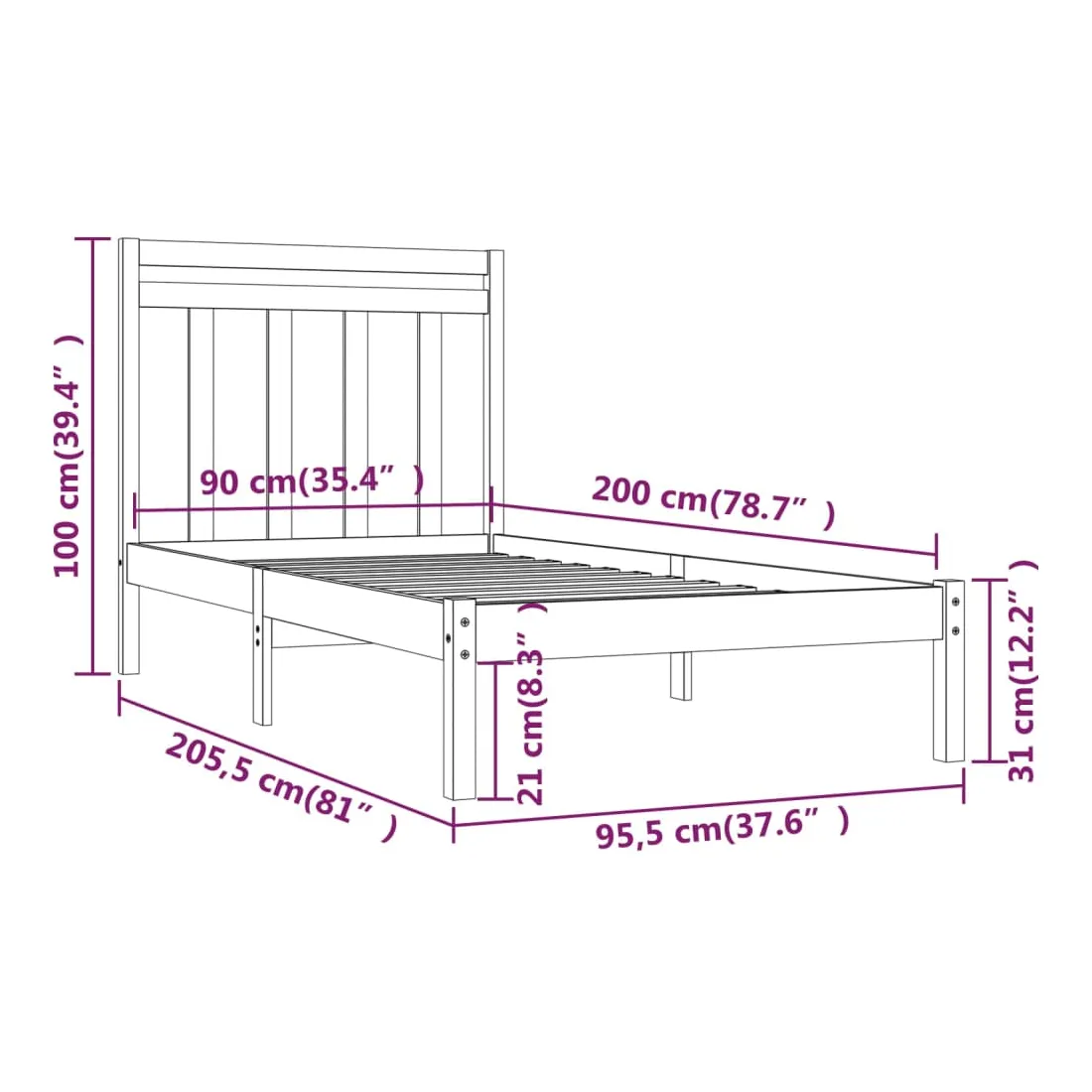Ce cadre de lit classique, au design simple mais intemporel, est destiné à apporter une touche pratique et décorative à votre chambre à coucher. Bois de pin massif : le bois de pin massif est un matériau naturellement beau. Le bois de pin a un grain droit et les nœuds donnent au matériau son aspect caractéristique et rustique.Cadre robuste : les lattes de contreplaqué assurent une bonne répartition du poids, garantissant que le matelas reste en place à chaque torsion de votre corps pendant le sommeil.Expérience confortable : combinez ce cadre de lit et cette tête de lit en bois pour profiter pleinement de vos soirées. Qu'il s'agisse de vous reposer contre la tête de lit pour lire ou simplement faire un doux rêve, ce lit en bois saura répondre à vos besoins. Remarque :Le matelas n'est pas inclus. Vous pouvez consulter notre boutique pour trouver les matelas assortis.Ce cadre de lit convient à un matelas mesurant 90 x 200 cm.