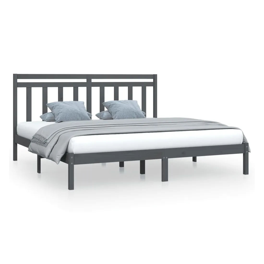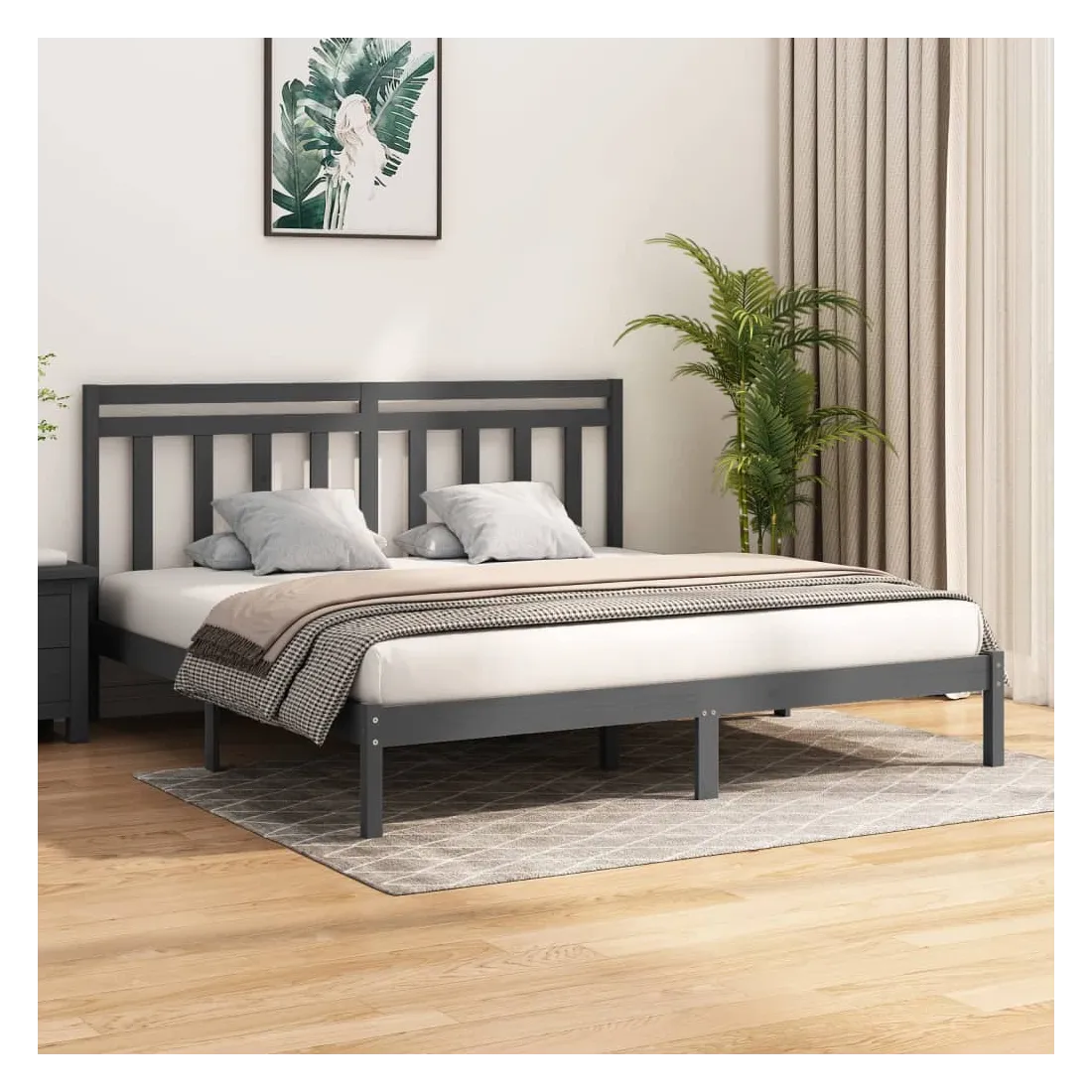 Cadre de lit sans matelas gris 200x200 cm bois massif