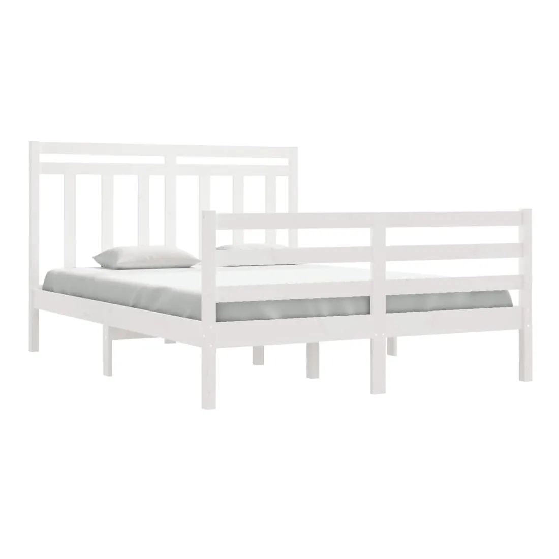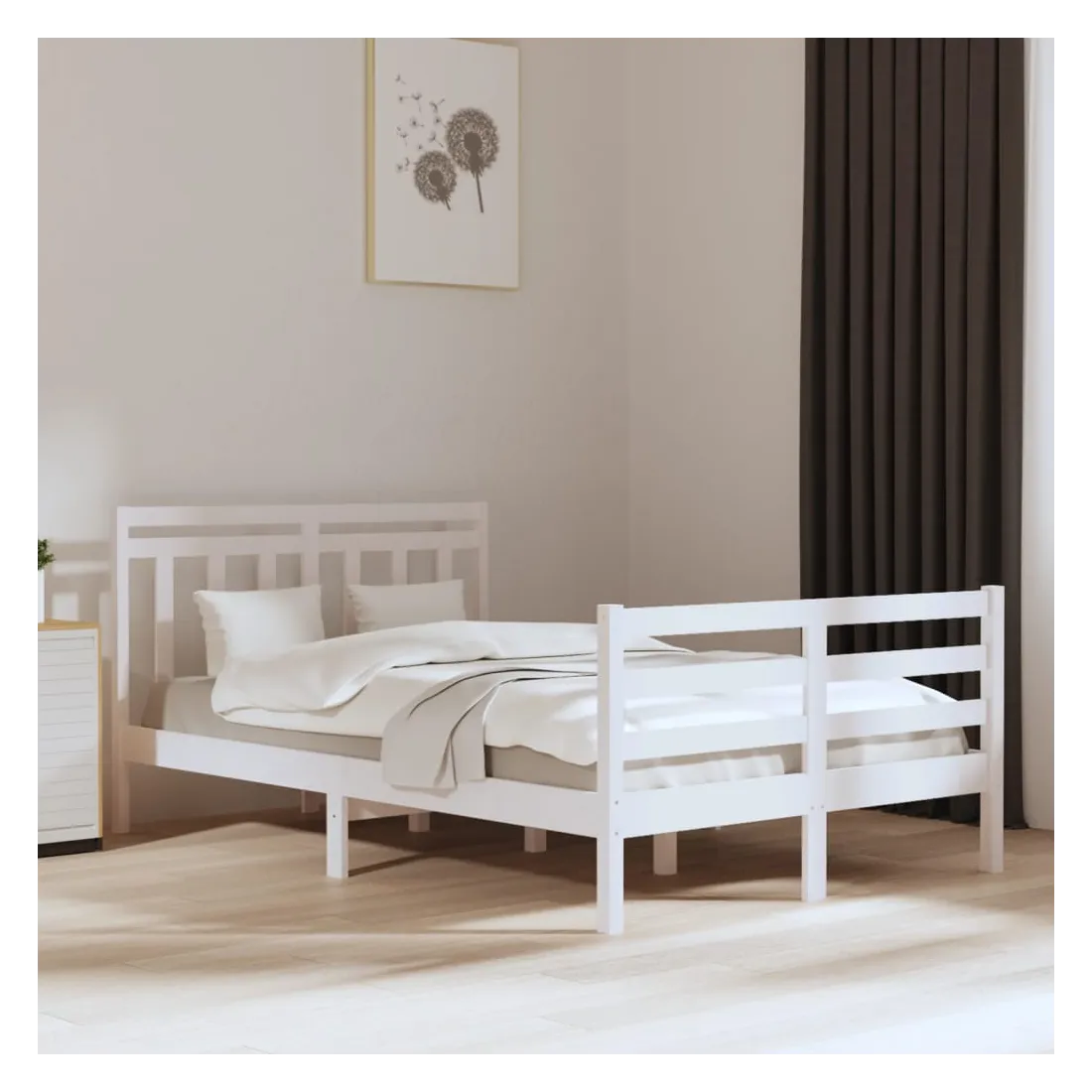 Cadre de lit sans matelas blanc 135x190 cm bois massif