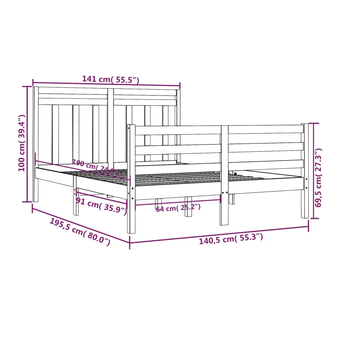 vidaXLCe cadre de lit classique, au design simple mais intemporel, est destiné à apporter une touche pratique et décorative à votre chambre à coucher. Bois de pin massif : le bois de pin massif est un matériau naturellement beau. Le bois de pin a un grain droit et les nœuds donnent au matériau son aspect caractéristique et rustique. Lattes de contreplaqué : les lattes de contreplaqué assurent une bonne répartition du poids, garantissant que le matelas reste en place à chaque torsion de votre corps pendant le sommeil.Expérience confortable : combinez ce cadre de lit et cette tête de lit en bois pour profiter pleinement de vos soirées. Qu'il s'agisse de vous reposer contre la tête de lit pour lire ou simplement faire un doux rêve, ce lit en bois saura répondre à vos besoins. Remarque :Le matelas n'est pas inclus. Vous pouvez consulter notre boutique pour trouver les matelas assortis.Ce cadre de lit convient à un matelas mesurant 135 x 190 cm (double).