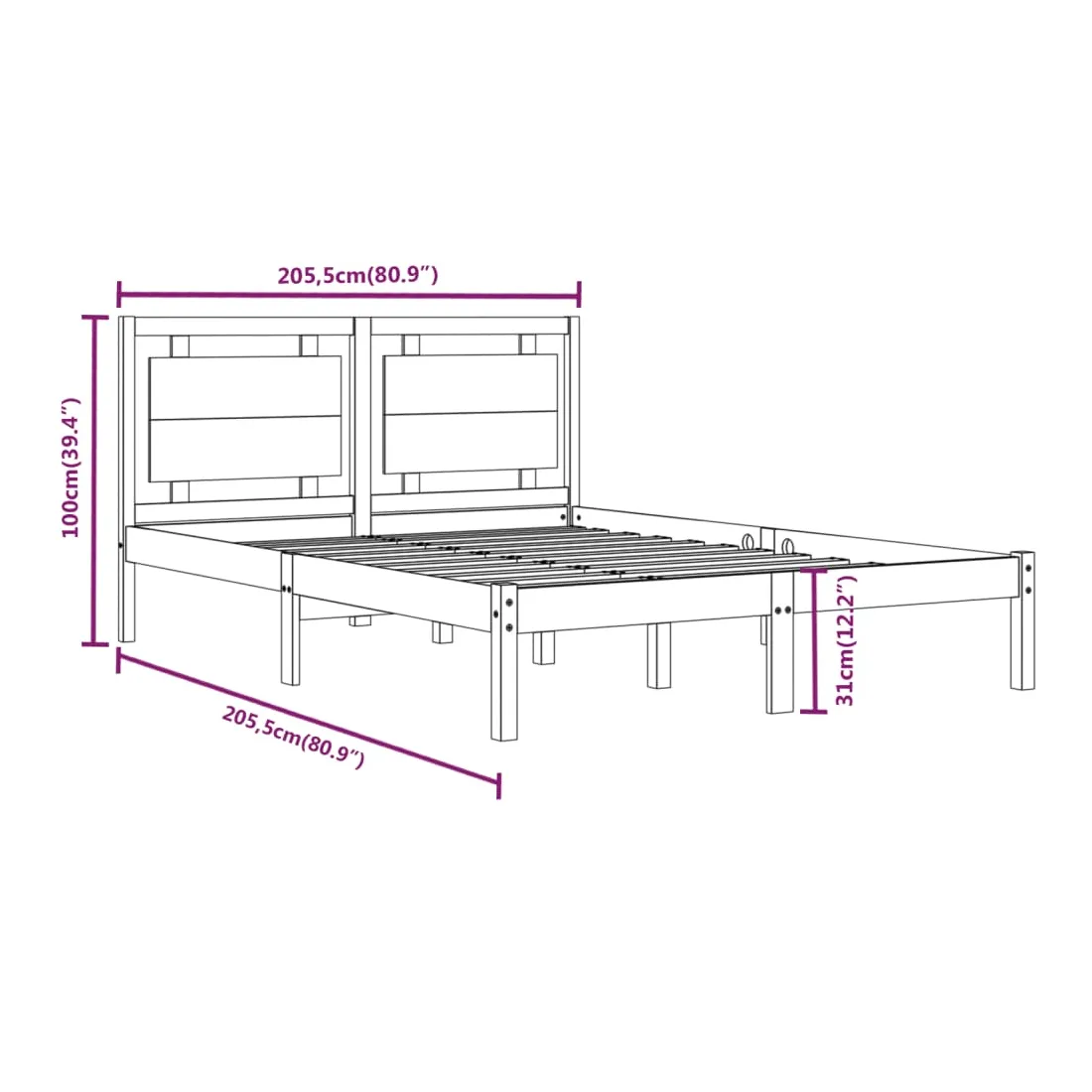 - Dimensions du cadre du lit : 205,5 x 205,5 x 31 cm (L x l x H)
