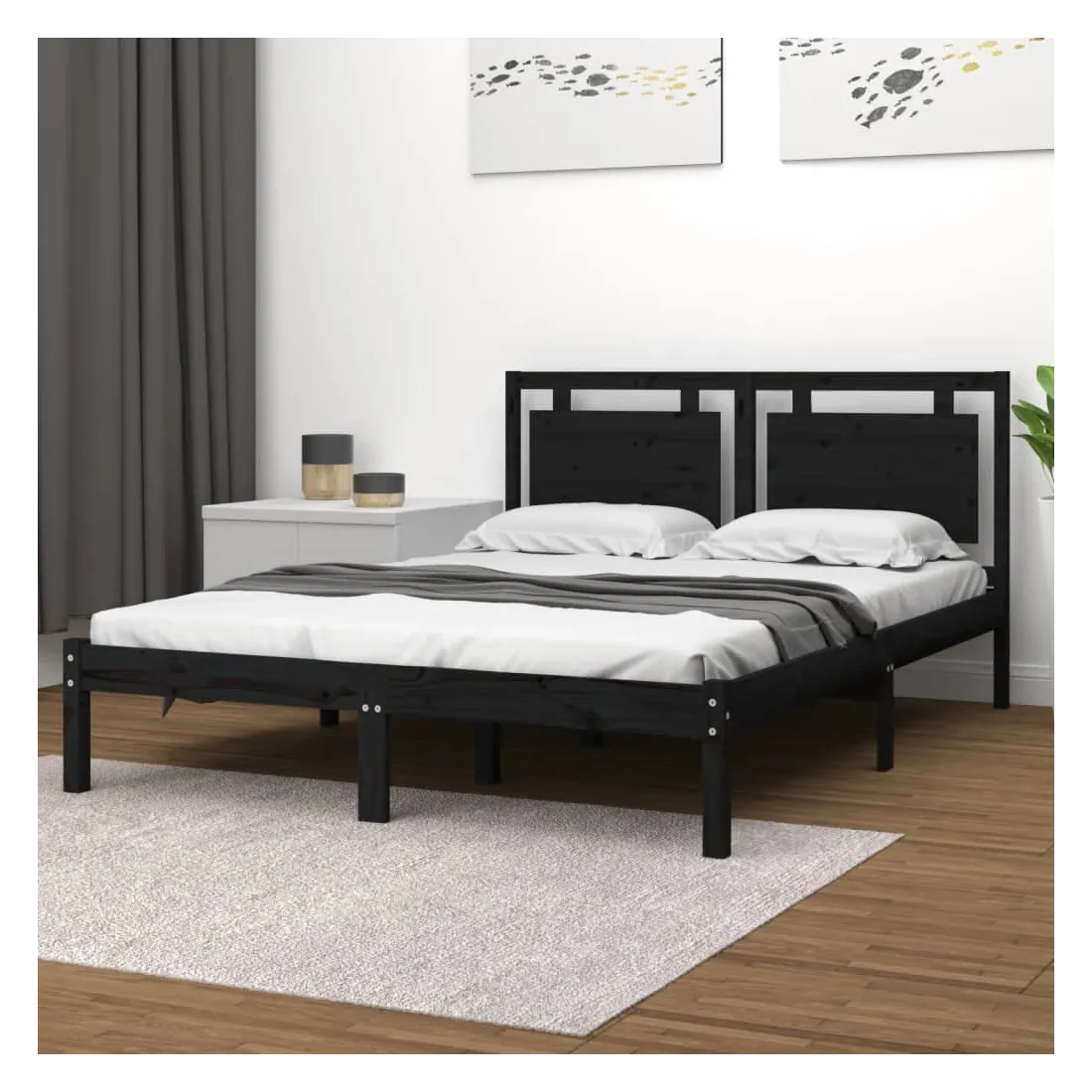 Cadre de lit sans matelas noir 200x200 cm bois massif