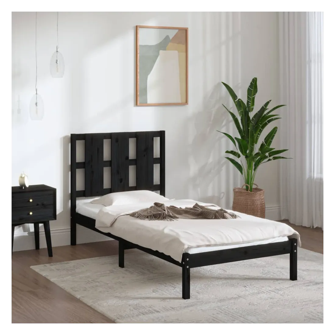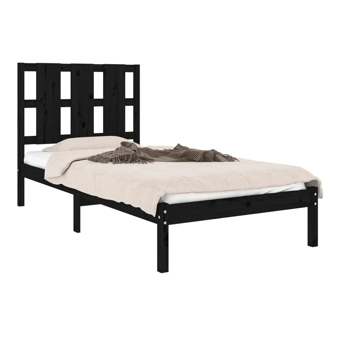 Cadre de lit sans matelas noir 100x200 cm bois massif de pin