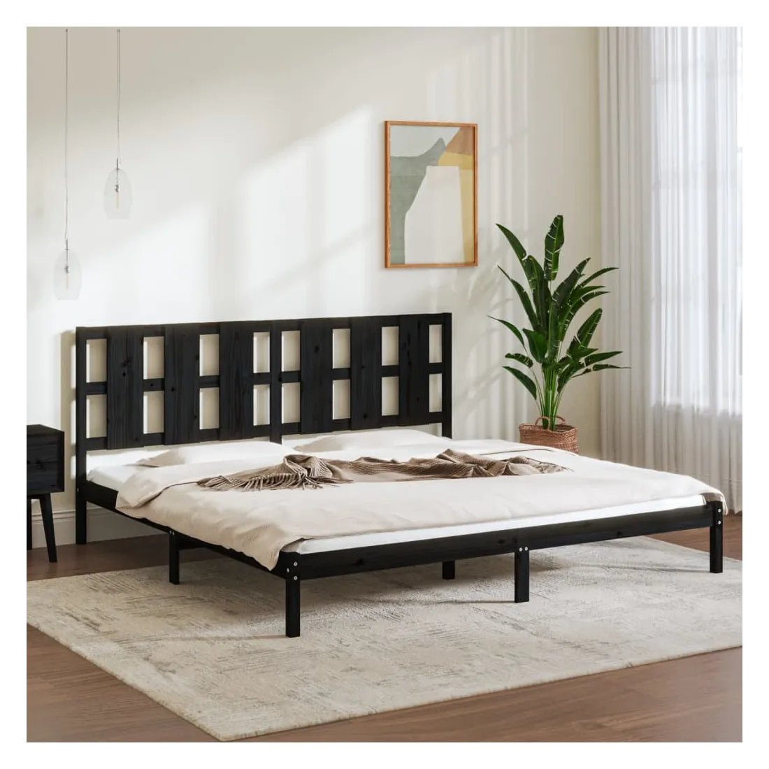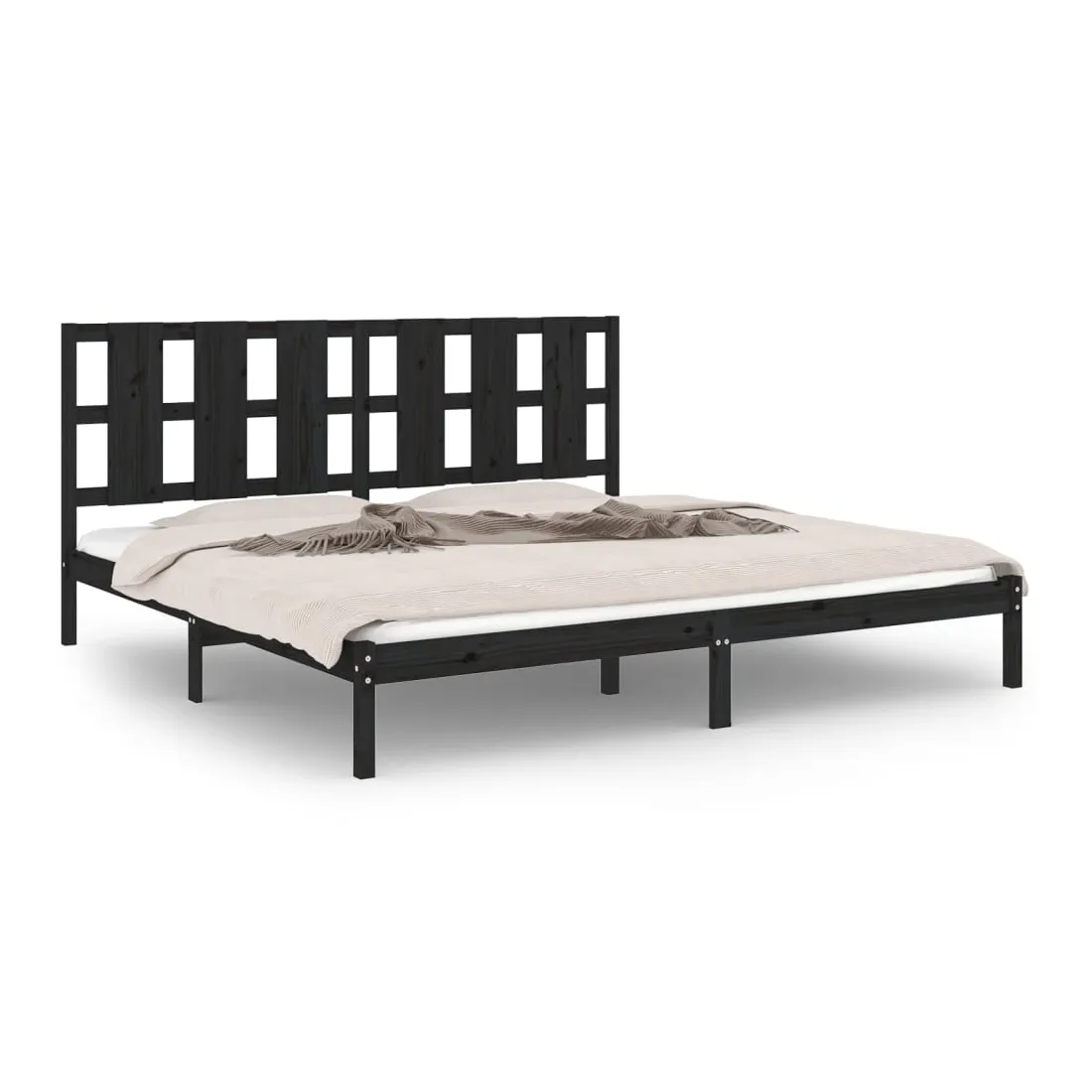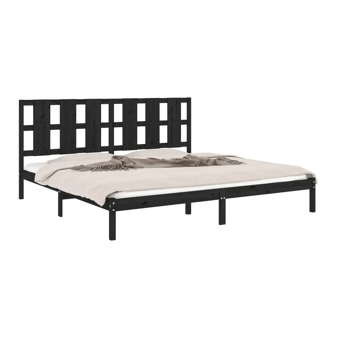 Cadre de lit sans matelas noir 200x200 cm bois massif de pin