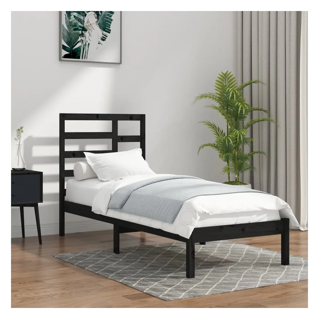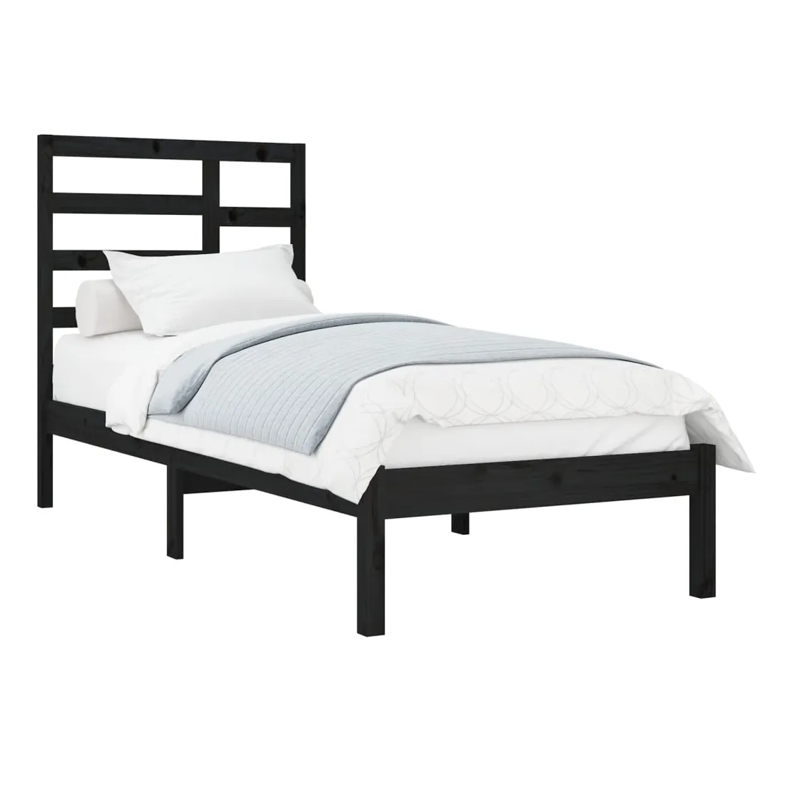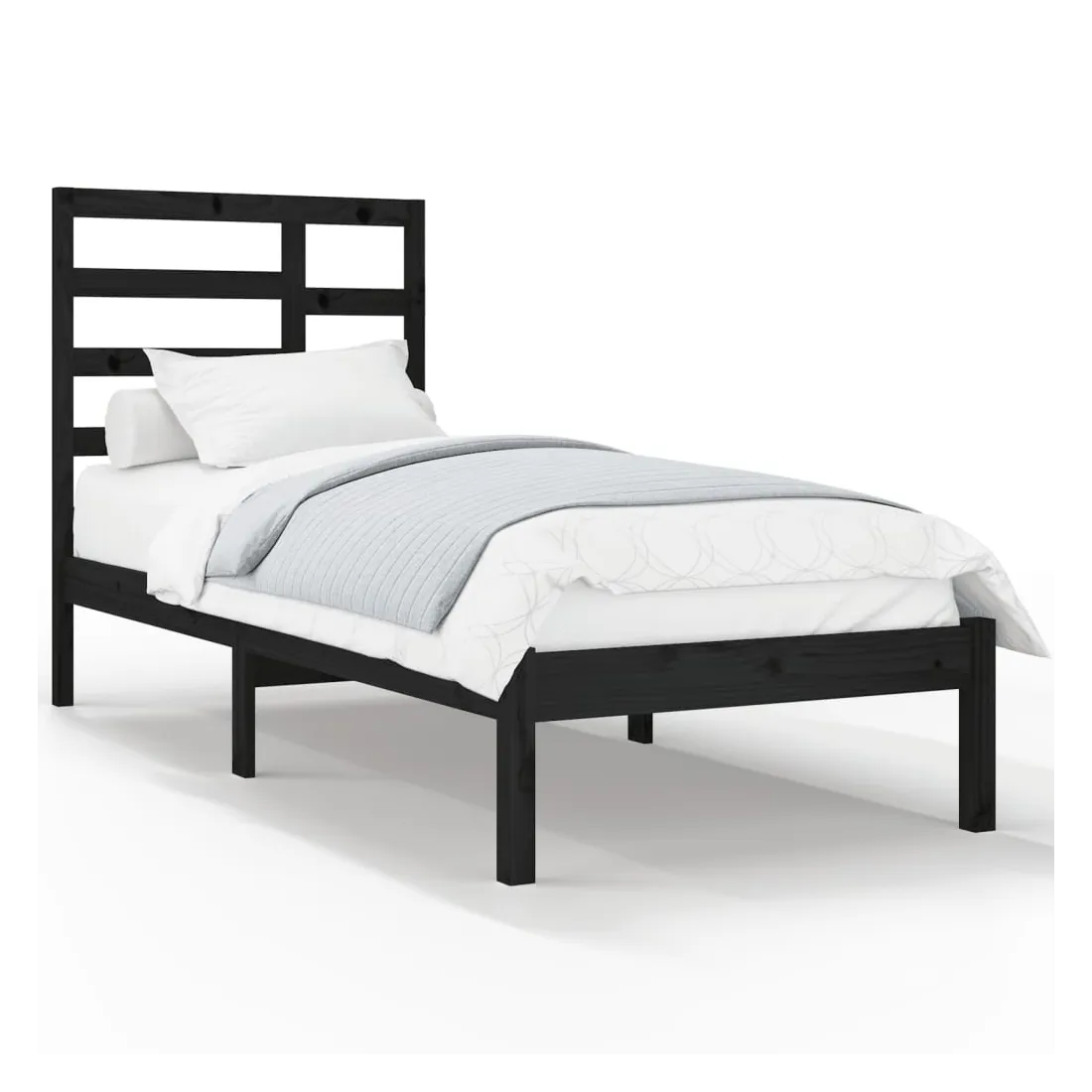 Cadre de lit sans matelas noir bois massif 100x200 cm