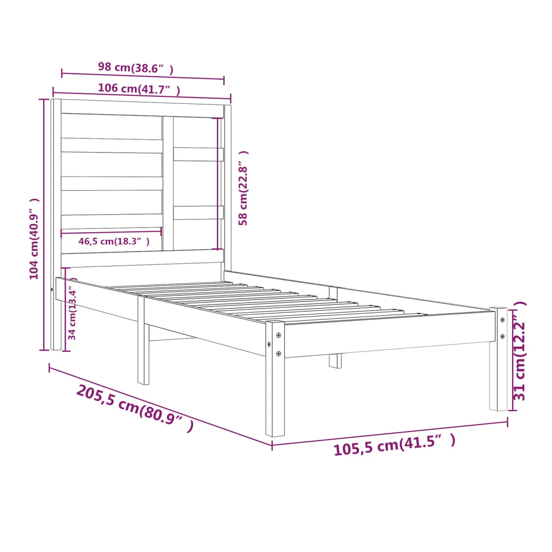 • Matériau du cadre de lit : bois de pin massif