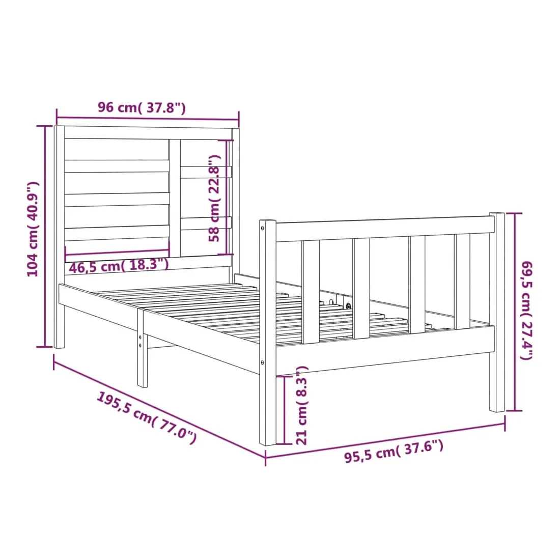 • Taille de matelas appropriée : 90 x 190 cm (l x L) (simple 3FT) (matelas n'est pas inclus)