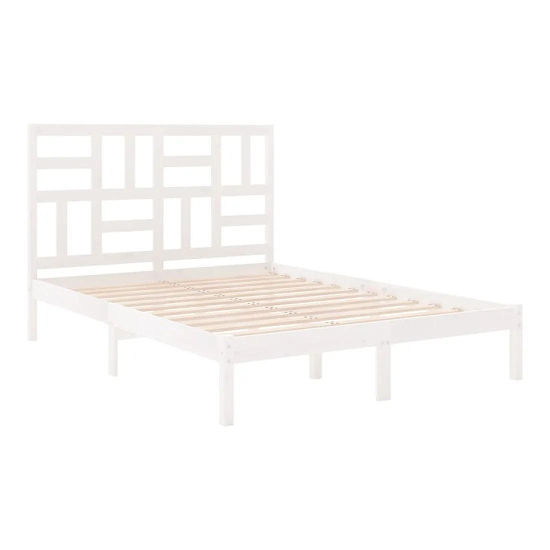 Cadre de lit sans matelas blanc bois massif 140x190 cm
