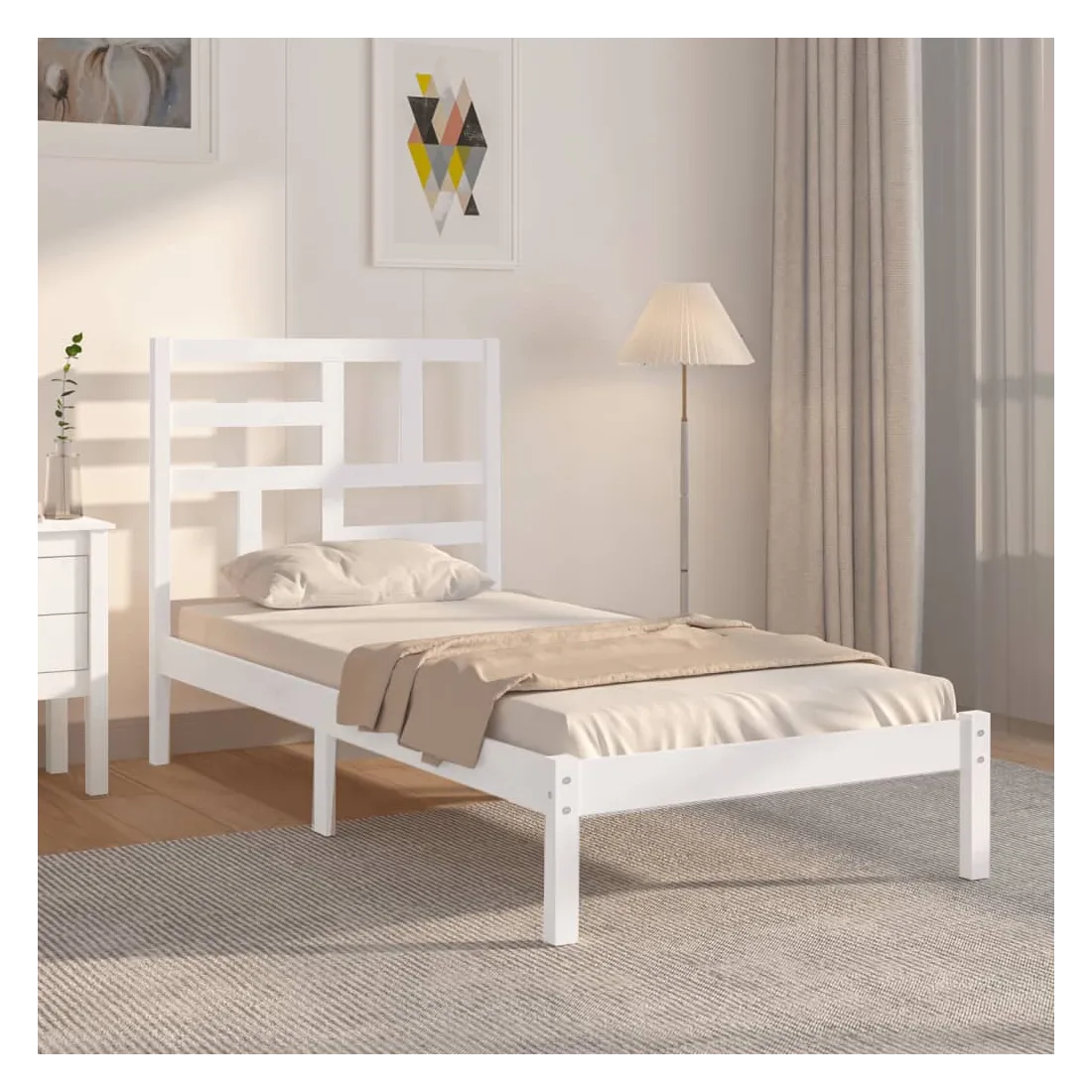 Cadre de lit sans matelas blanc bois massif 100x200 cm