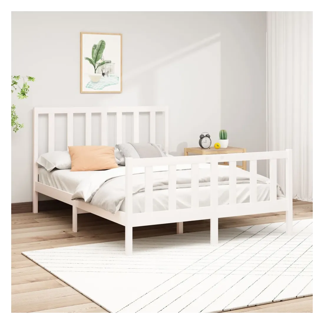 Cadre de lit sans matelas blanc 160x200 cm bois de pin massif