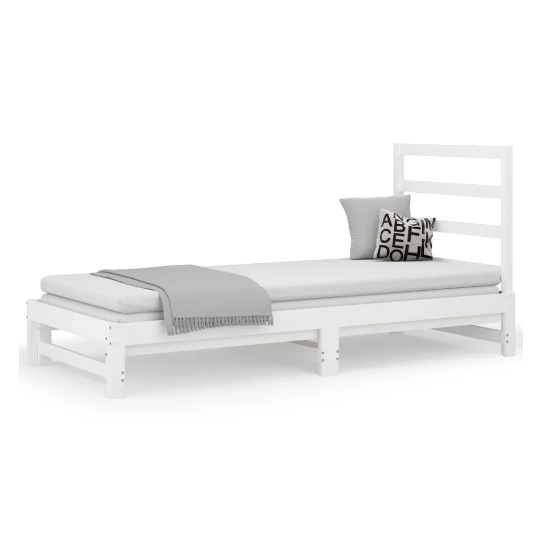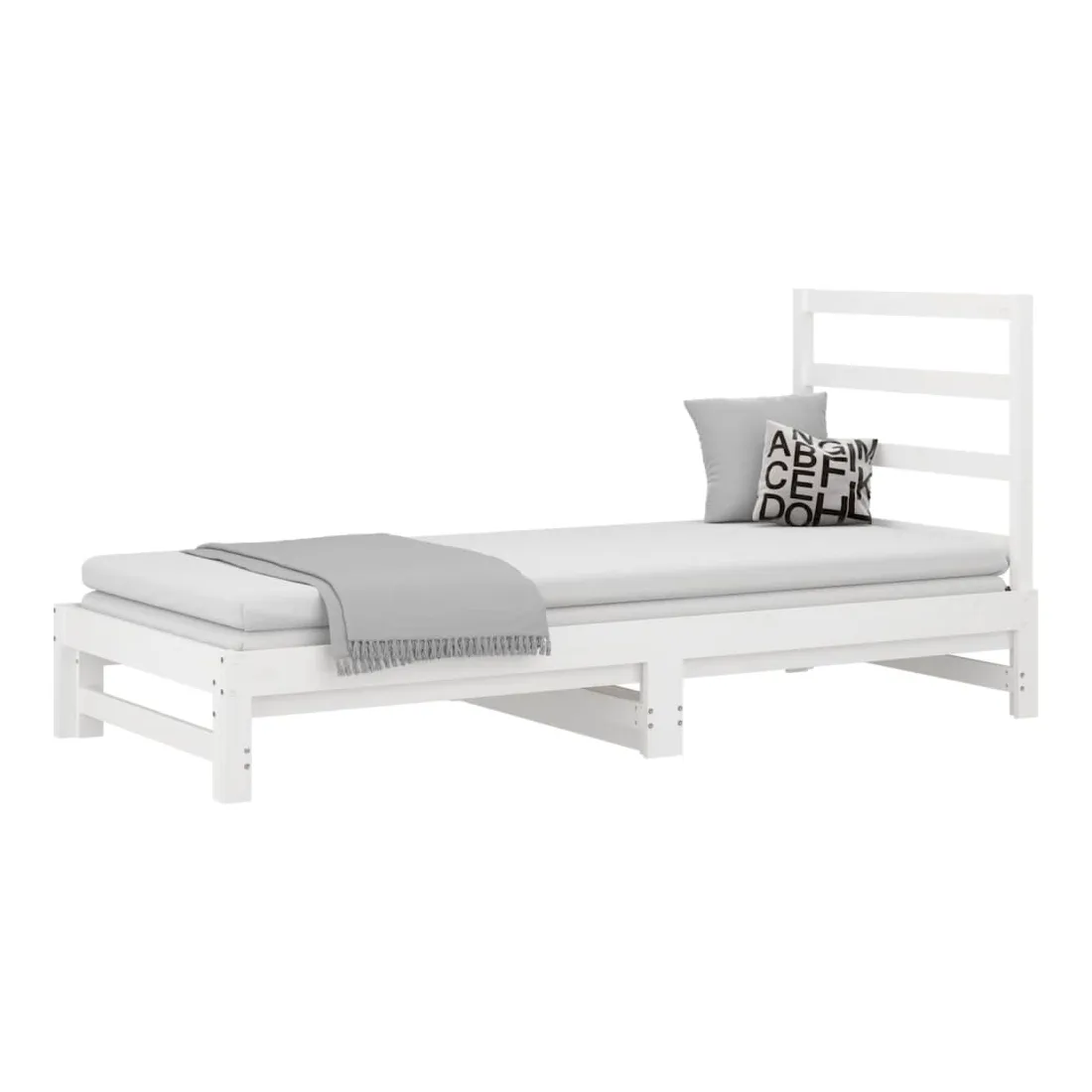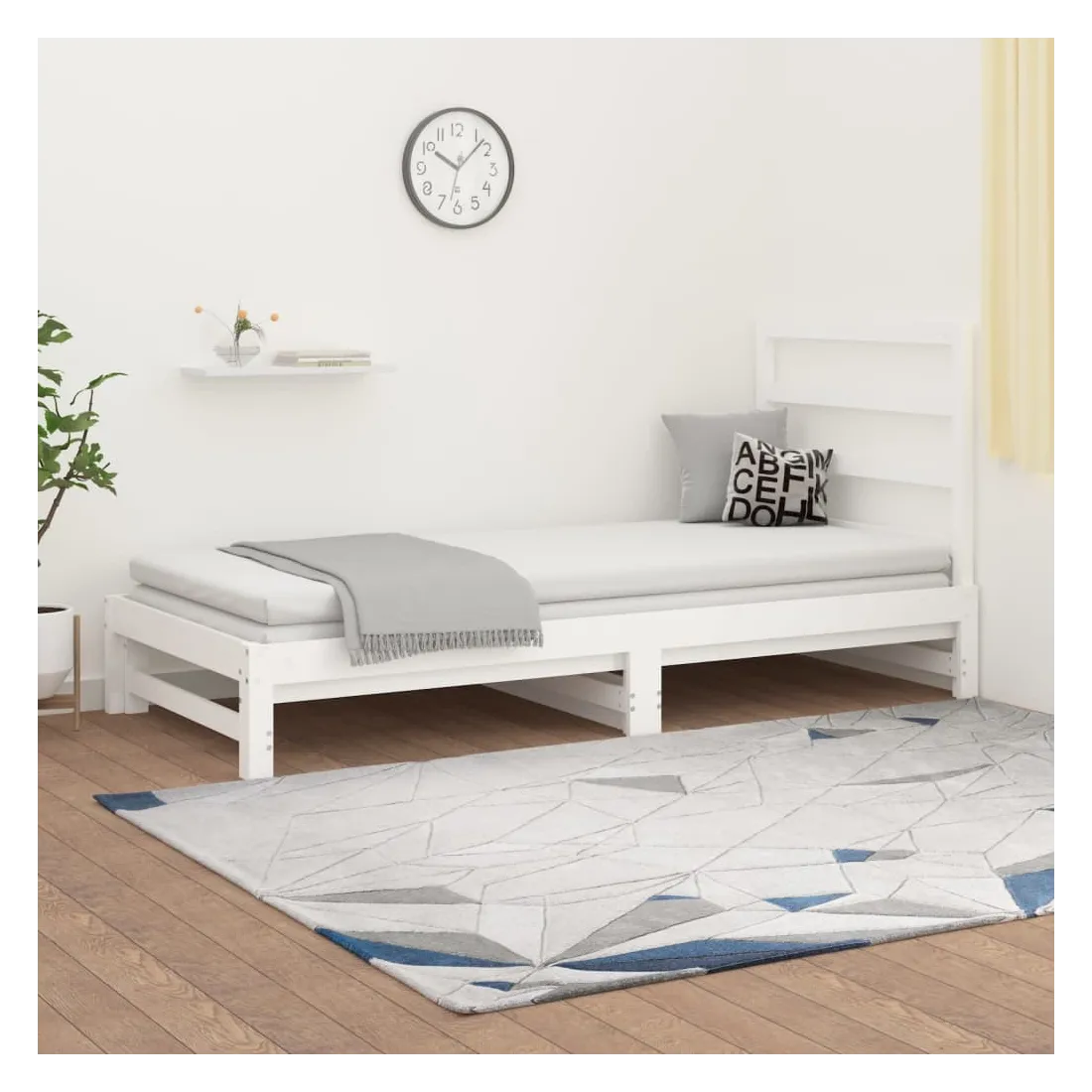 vidaXLCe lit de jour en bois polyvalent peut être utilisé comme lit dans votre chambre à coucher et s'intègre également parfaitement comme canapé dans votre salon. Bois de pin massif : le bois de pin massif est un matériau naturel magnifique. Le bois de pin a un grain droit et les nœuds donnent au matériau son aspect caractéristique et rustique. Ce lit d'appoint est en bois de pin massif, plus stable et durable.Design à lattes : le sommier à lattes permet une meilleure circulation de l'air pour garder le matelas frais plus longtemps, améliorant la capacité de poids du lit et assurant la stabilité.Utilisation facile : ce lit est très pratique à utiliser et ne nécessite pas de sommier ni de cadre. Placez simplement le matelas sur le dessus et profitez d'un sommeil réparateur ou d'un temps assis !Canapé-lit coulissant : ce lit de jour en bois peut être utilisé comme canapé pendant la journée ou comme lit la nuit, offrant une solution rapide pour accueillir des invités pour la nuit tout en économisant de l'espace.Soutien confortable : cette tête de lit vous offre un excellent soutien dorsal lorsque vous êtes assis au lit pour lire ou regarder des films. Remarque :La livraison comprend uniquement un cadre de lit de jour. Le matelas n'est pas inclus. Vous pouvez consulter notre boutique pour trouver les matelas assortis.Chaque produit est livré avec un manuel de montage dans la boîte pour un montage facile.