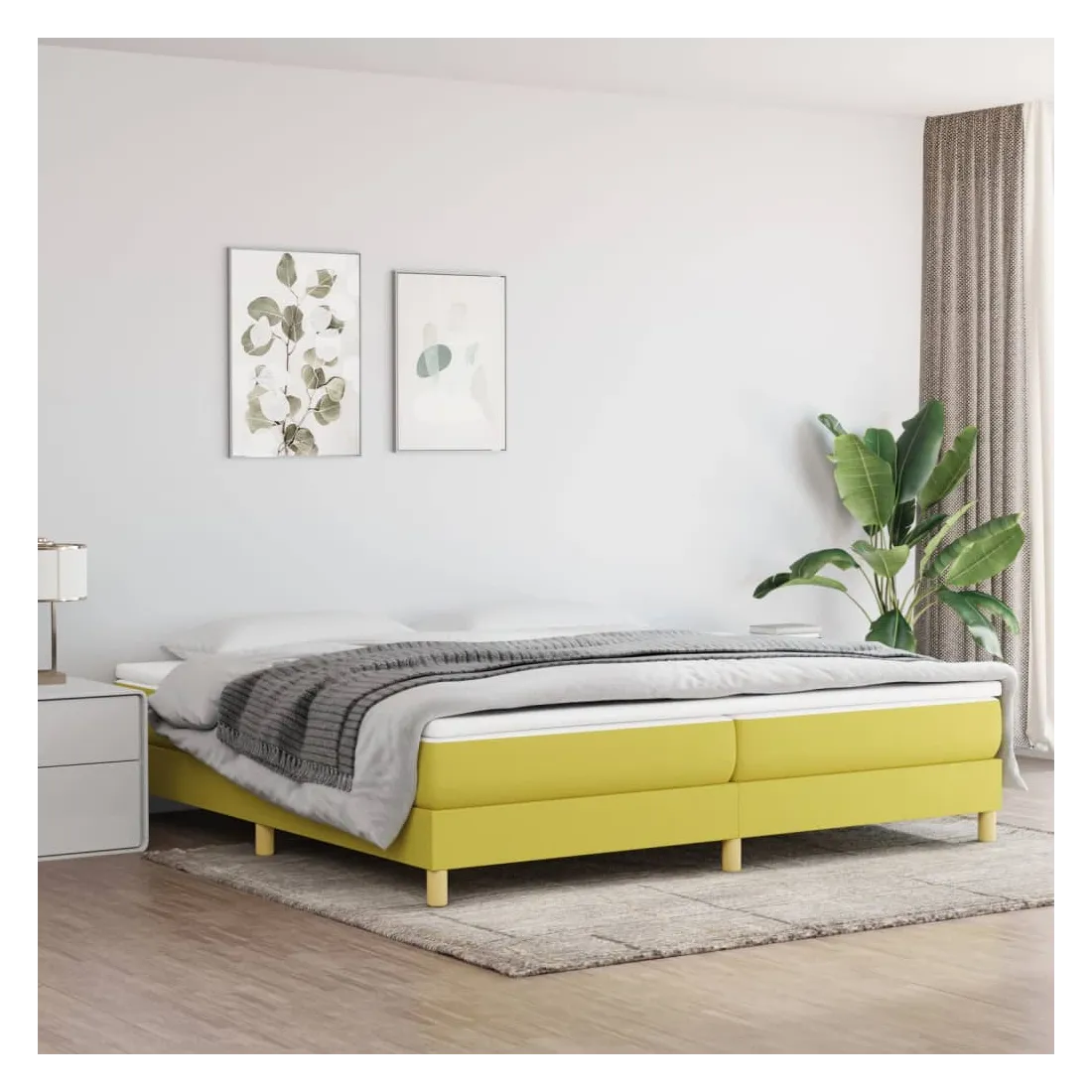 Cadre de lit à ressorts vert 200x200 cm tissu