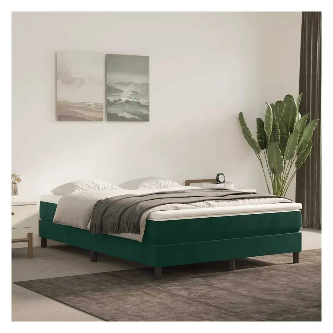 Cadre de lit à ressorts vert foncé 140x190 cm velours