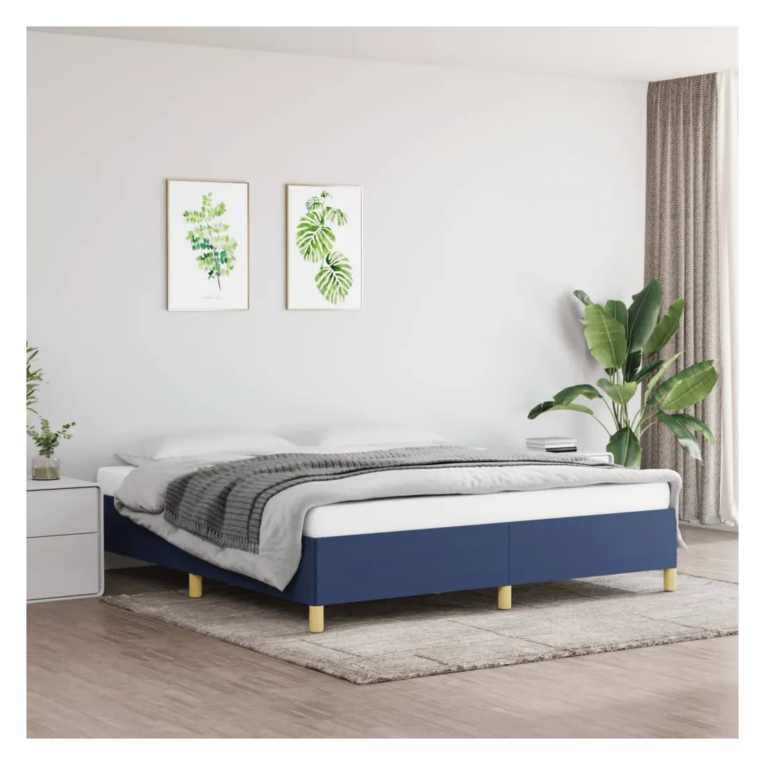 Cadre de lit à ressorts bleu 160x200 cm tissu
