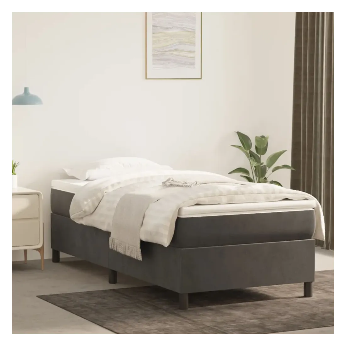 Obtenez une meilleure nuit de sommeil reposante grâce à ce cadre de lit à ressorts ! Il est un supplément accueillant à toute chambre à coucher. Velours doux : le velours est un tissu doux et luxueux qui se reconnaît à son tas dense de fibres uniformément coupées qui ont une touche lisse. Le tissu en velours présente un toucher doux distinctif, ce qui le rend confortable au toucher.Pieds de soutien : le lit est soutenu par des pieds robustes, qui assurent sa stabilité, sa sécurité et sa fermeté.Lattes de contreplaqué : les lattes de contreplaqué assurent une bonne répartition du poids, garantissant que le matelas reste en place à chaque torsion de votre corps pendant le sommeil. Bon à savoir :Un matelas n'est pas inclus avec ce lit. Nous offrons une sélection variée de matelas. Vous pouvez consulter notre boutique pour trouver un matelas assorti.