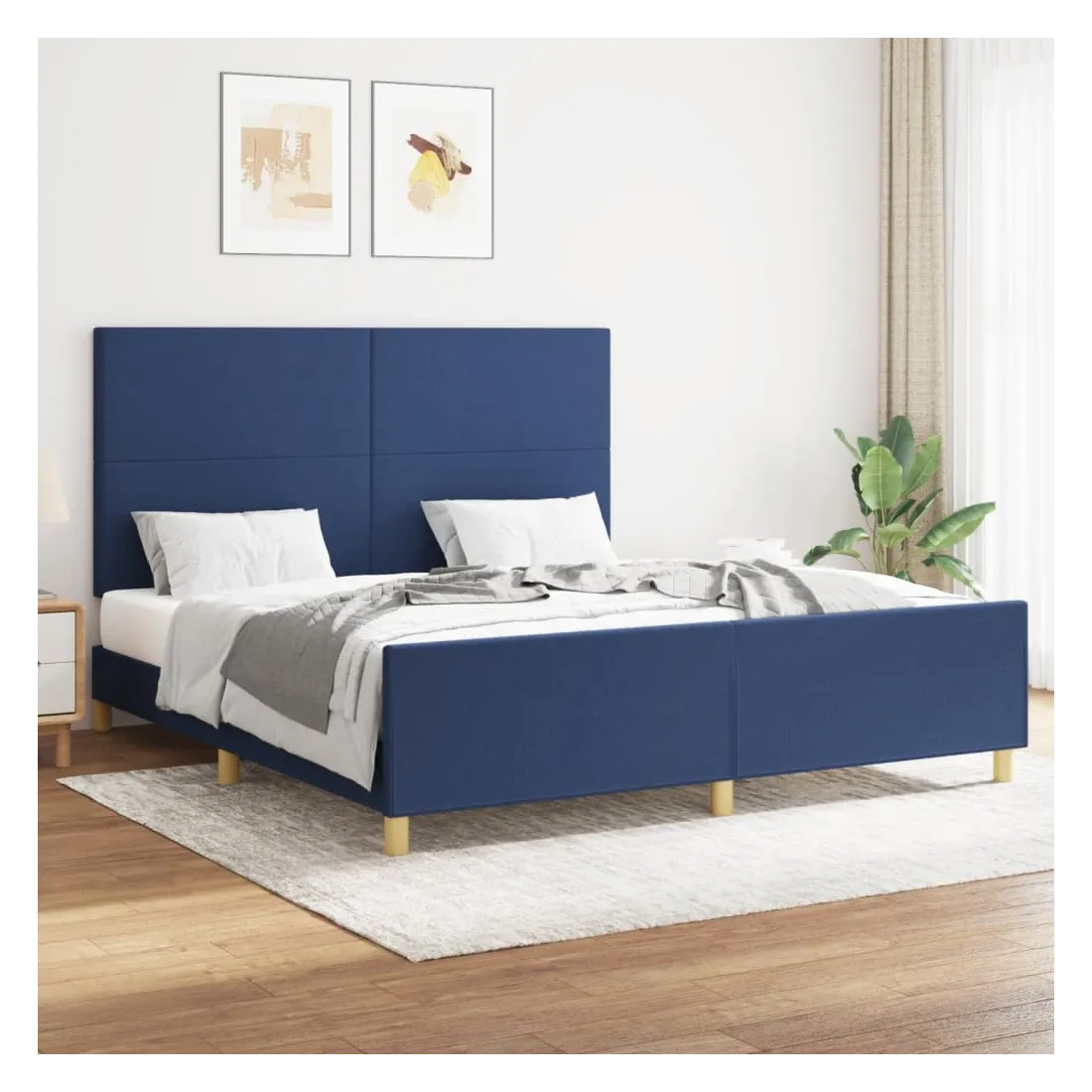 Cadre de lit sans matelas bleu 160x200 cm tissu