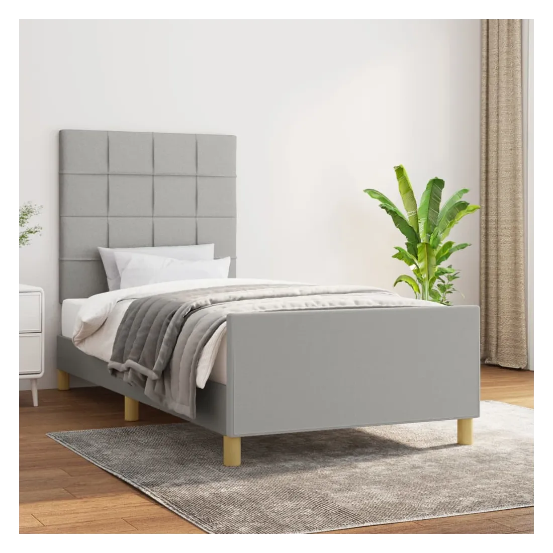 Obtenez une meilleure nuit de sommeil reposante grâce à ce cadre de lit avec tête de lit ! Il est un supplément accueillant à toute chambre à coucher. Tissu durable : le tissu présente un aspect simple et épuré, et il est respirant et durable.Hauteur réglable : la tête de lit est réglable en hauteur selon vos préférences.Pieds de soutien : le lit est soutenu par des pieds robustes, qui assurent sa stabilité, sa sécurité et sa fermeté.Lattes de contreplaqué : les lattes de contreplaqué assurent une bonne répartition du poids, garantissant que le matelas reste en place à chaque torsion de votre corps pendant le sommeil.Excellent soutien : la tête de lit vous offre un excellent soutien du dos lorsque vous êtes assis dans votre lit pour lire ou regarder la télévision. Remarque :La livraison comprend uniquement un cadre de lit. Le matelas n'est pas inclus. Vous pouvez consulter notre boutique pour trouver les matelas assortis.Chaque produit est livré avec un manuel de montage dans la boîte pour un montage facile.