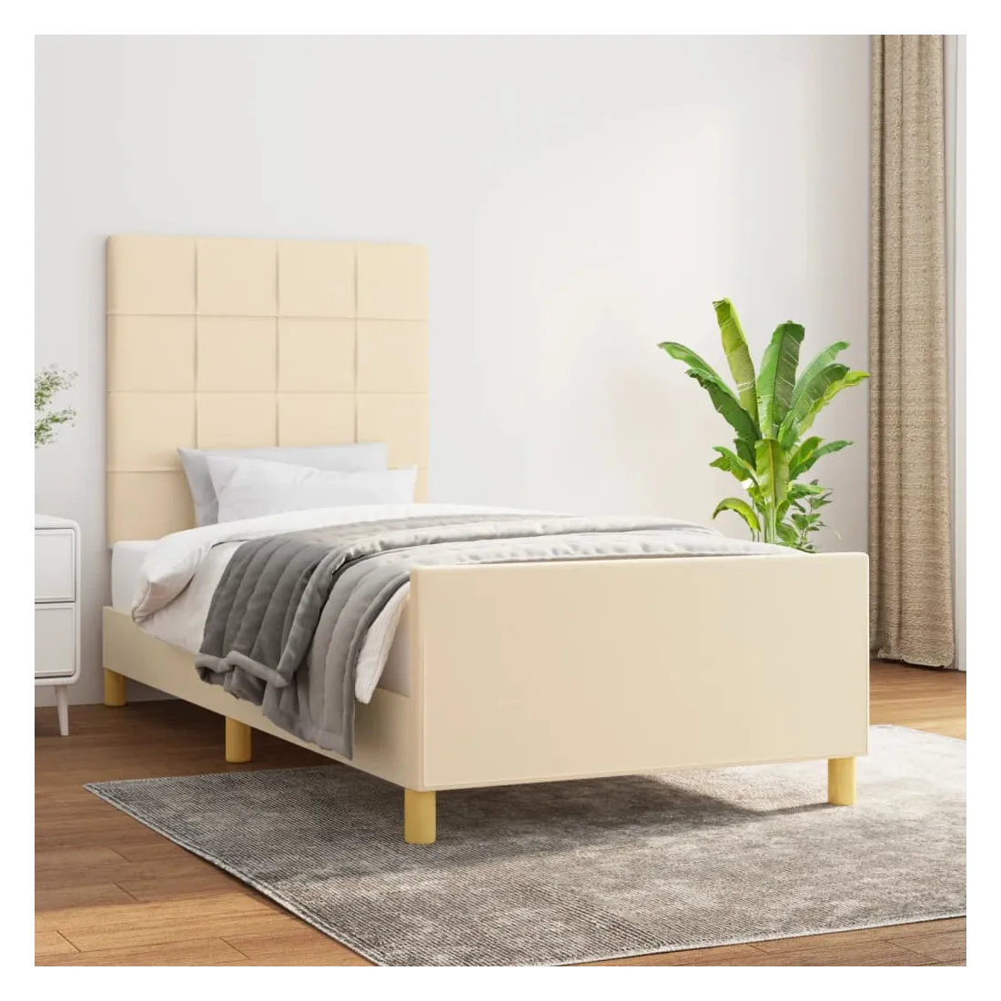 Obtenez une meilleure nuit de sommeil reposante grâce à ce cadre de lit avec tête de lit ! Il est un supplément accueillant à toute chambre à coucher. Tissu durable : le tissu présente un aspect simple et épuré, et il est respirant et durable.Hauteur réglable : la tête de lit est réglable en hauteur selon vos préférences.Pieds de soutien : le lit est soutenu par des pieds robustes, qui assurent sa stabilité, sa sécurité et sa fermeté.Lattes de contreplaqué : les lattes de contreplaqué assurent une bonne répartition du poids, garantissant que le matelas reste en place à chaque torsion de votre corps pendant le sommeil.Excellent soutien : la tête de lit vous offre un excellent soutien du dos lorsque vous êtes assis dans votre lit pour lire ou regarder la télévision. Remarque :La livraison comprend uniquement un cadre de lit. Le matelas n'est pas inclus. Vous pouvez consulter notre boutique pour trouver les matelas assortis.Chaque produit est livré avec un manuel de montage dans la boîte pour un montage facile.